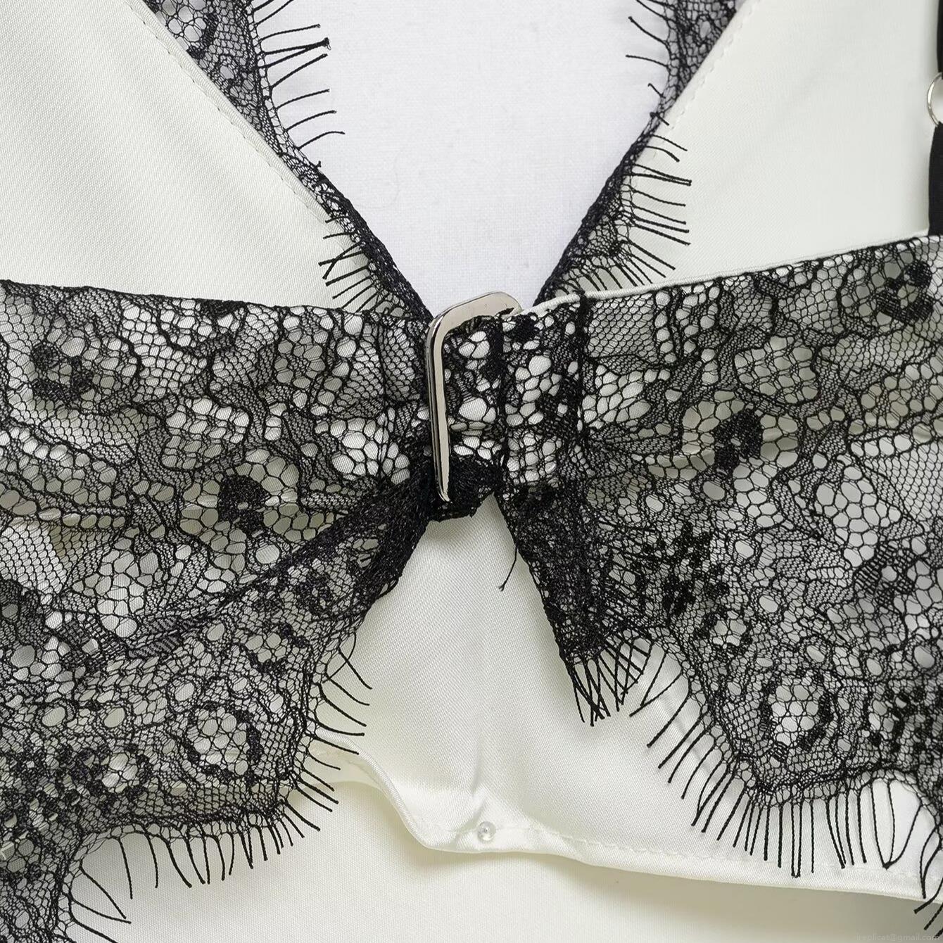 French Style Sexy V Neck Lace Patchwork Satin Cami Maxi Dress Backless Slim Fit Sleeveless Long Dress For Women Party Evening Wear