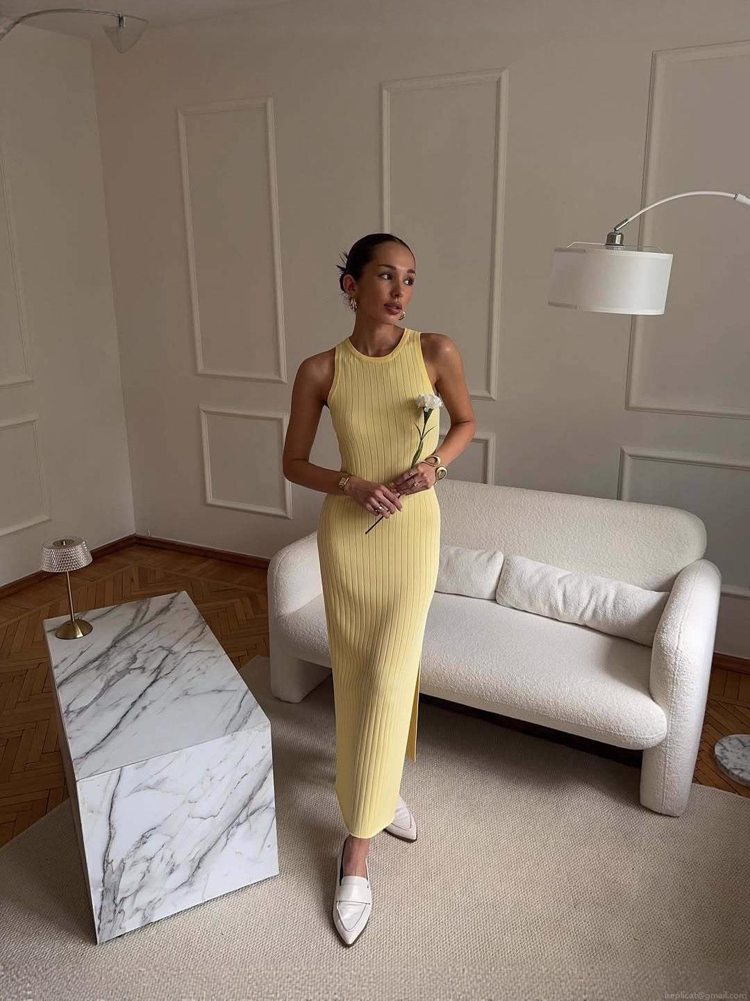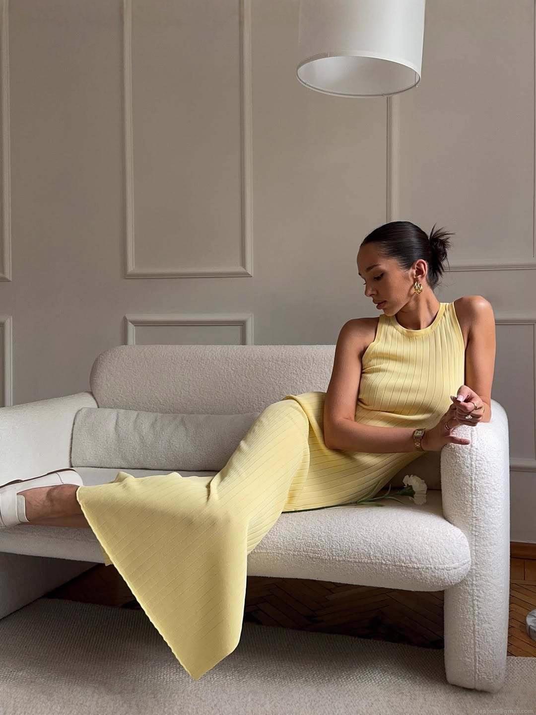 • French Style Sleeveless Ribbed Knit Maxi Dress 80% Cotton Blend Round Neck Slim Fit Elegant Vintage Bodycon Long Dress Women Summer Resort Outfits