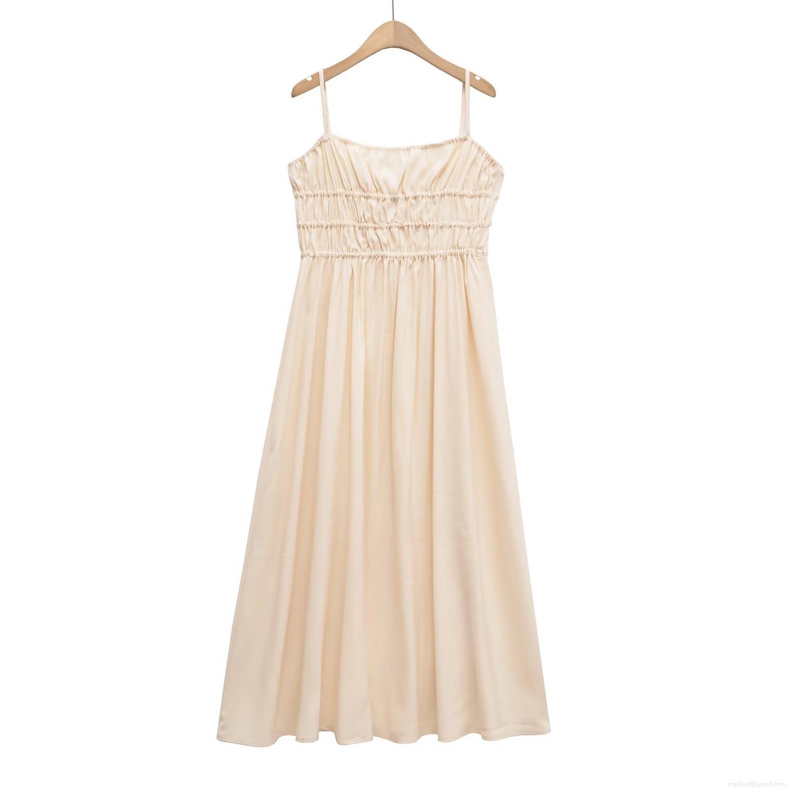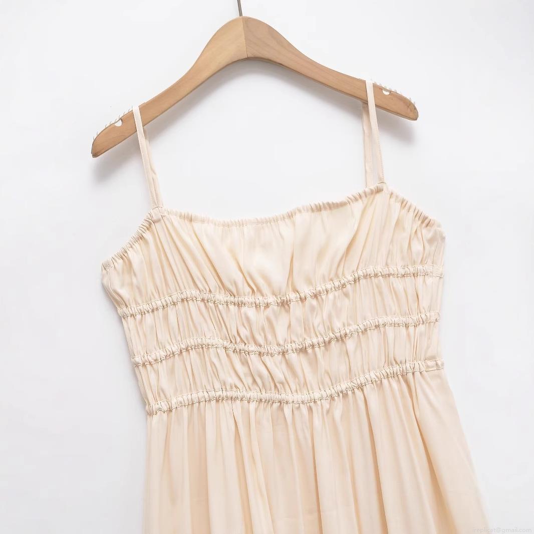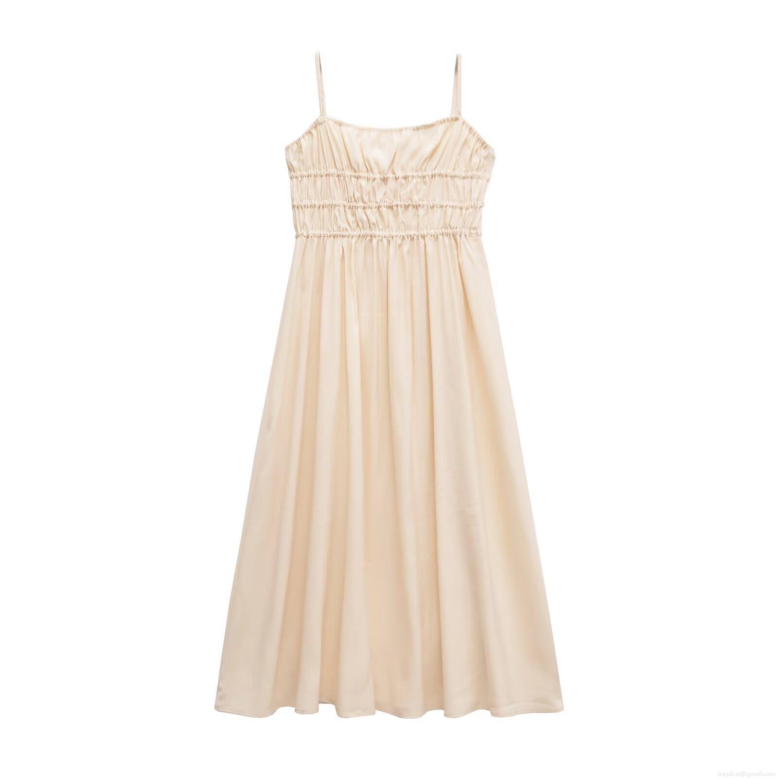 Solid Color, Gathering, Satin Feel, Thin Straps, Gathered Design