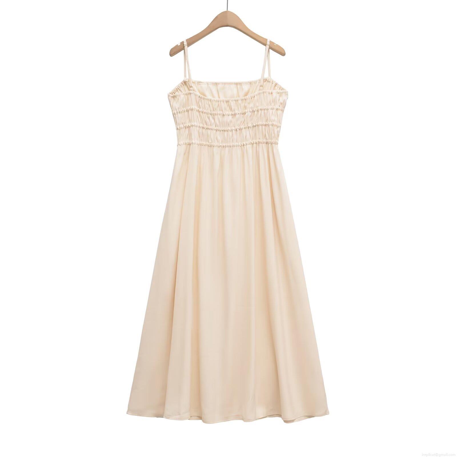 • French Style Women's Spaghetti Strap Maxi Dress Elegant Satin Texture Polyester Smocked Chest Sleeveless Solid Color Vacation Party Long Dress