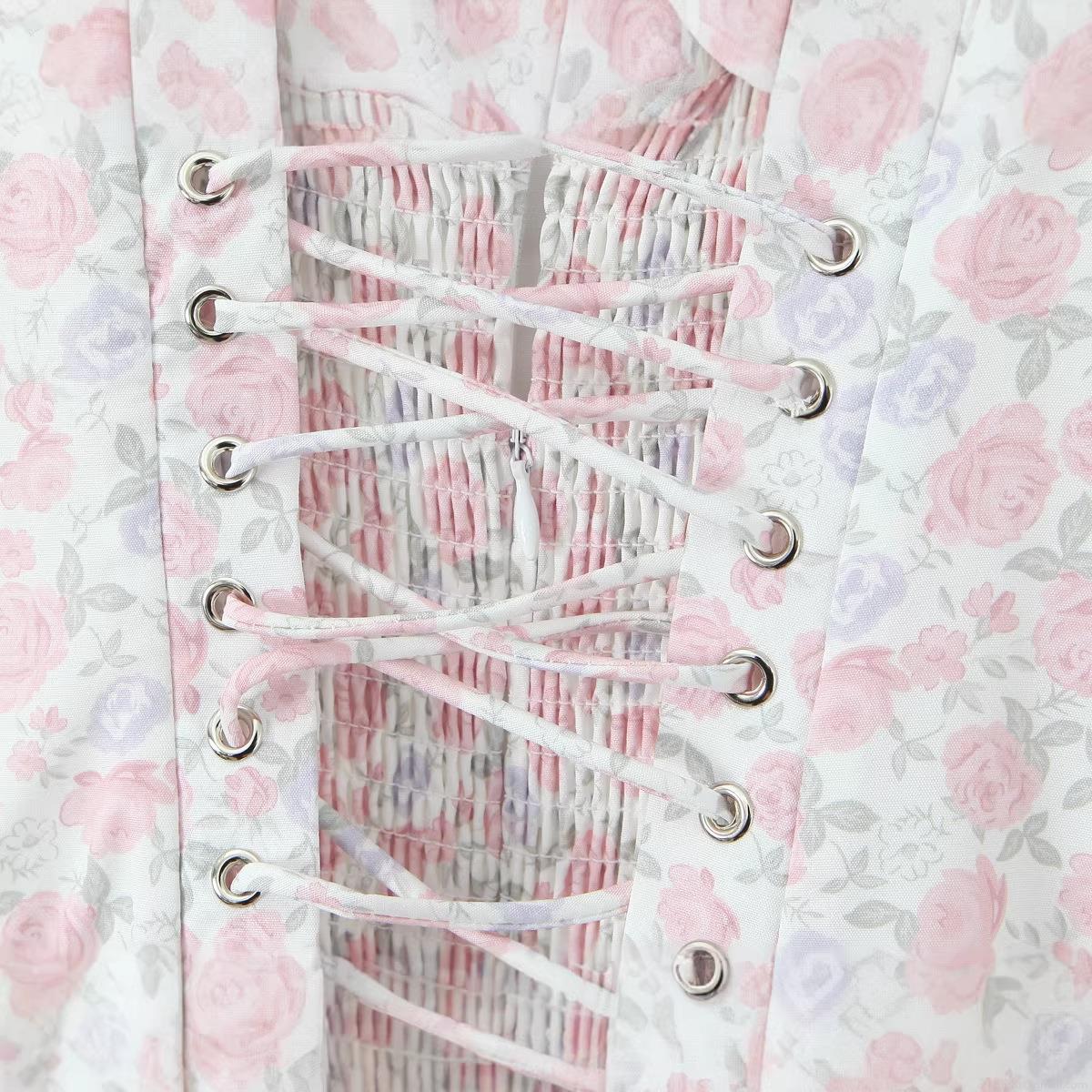 Floral Pattern, Rose, Lace Decoration, Off-shoulder, Metal Air Vent, Strap Design, Bundling Process