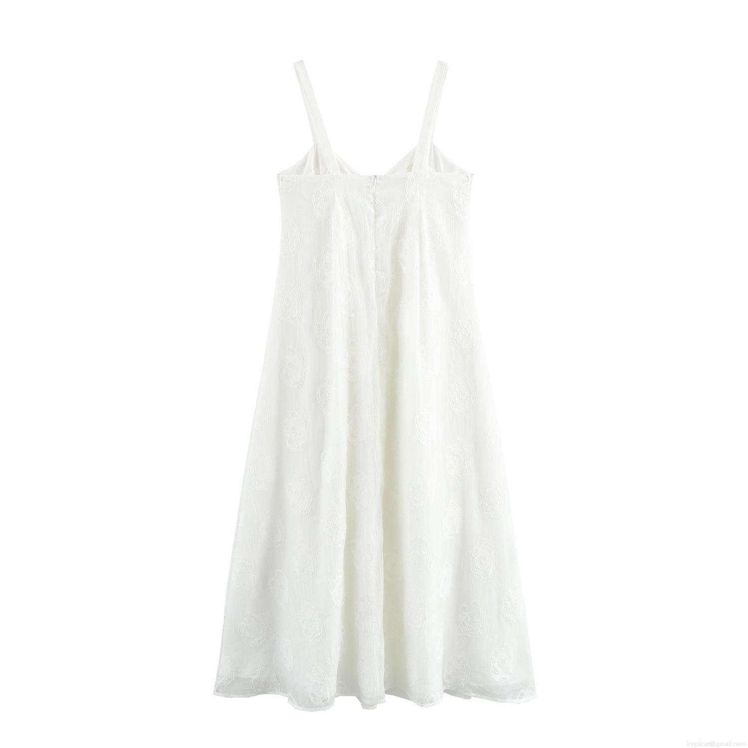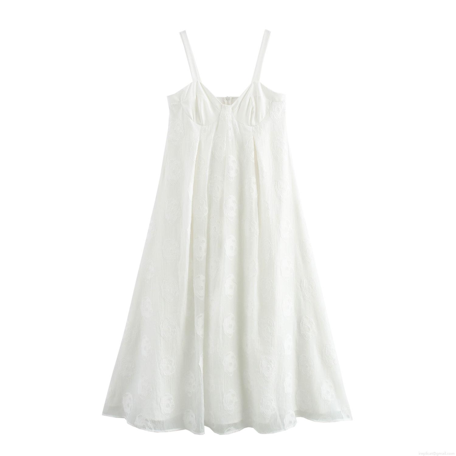 • French Vacation Style Women White Jacquard Cami Maxi Dress Sleeveless High Waist Elegant Long Dress For Summer Beach Party Pure Desire Lady Gown