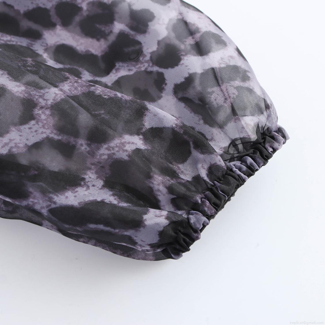 Splice, Leopard Print, Zipper, Puff Sleeves
