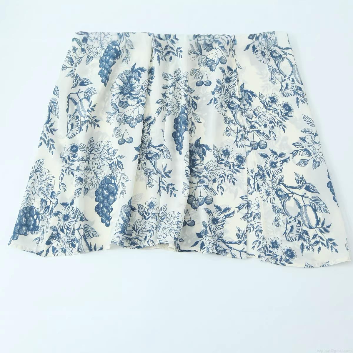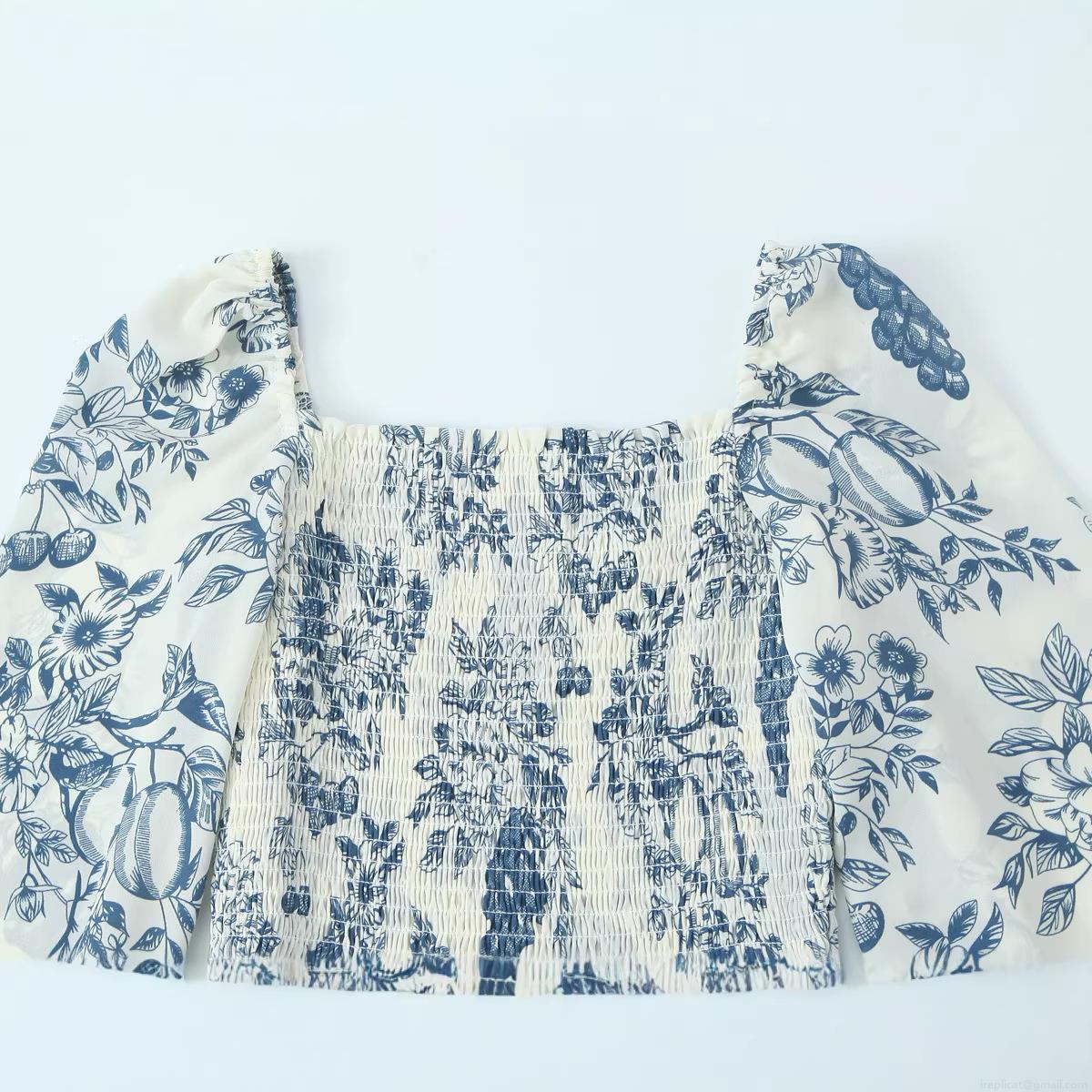 Puff Sleeves, Side Fork, Square Collar, Joui Print, Pleating Technique, Floral And Fruit Patterns