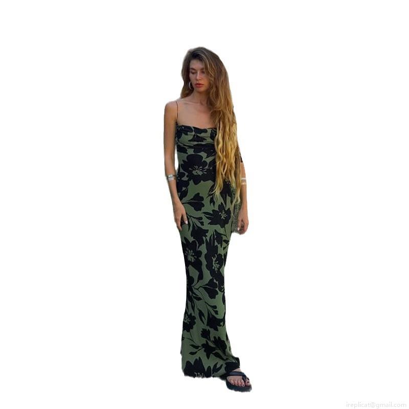 • Sexy Backless Cowl Neck Cami Maxi Dress for Women Tropical Leaf Print Slim Fit Polyester Spandex Summer Vacation Beach Party Long Dress