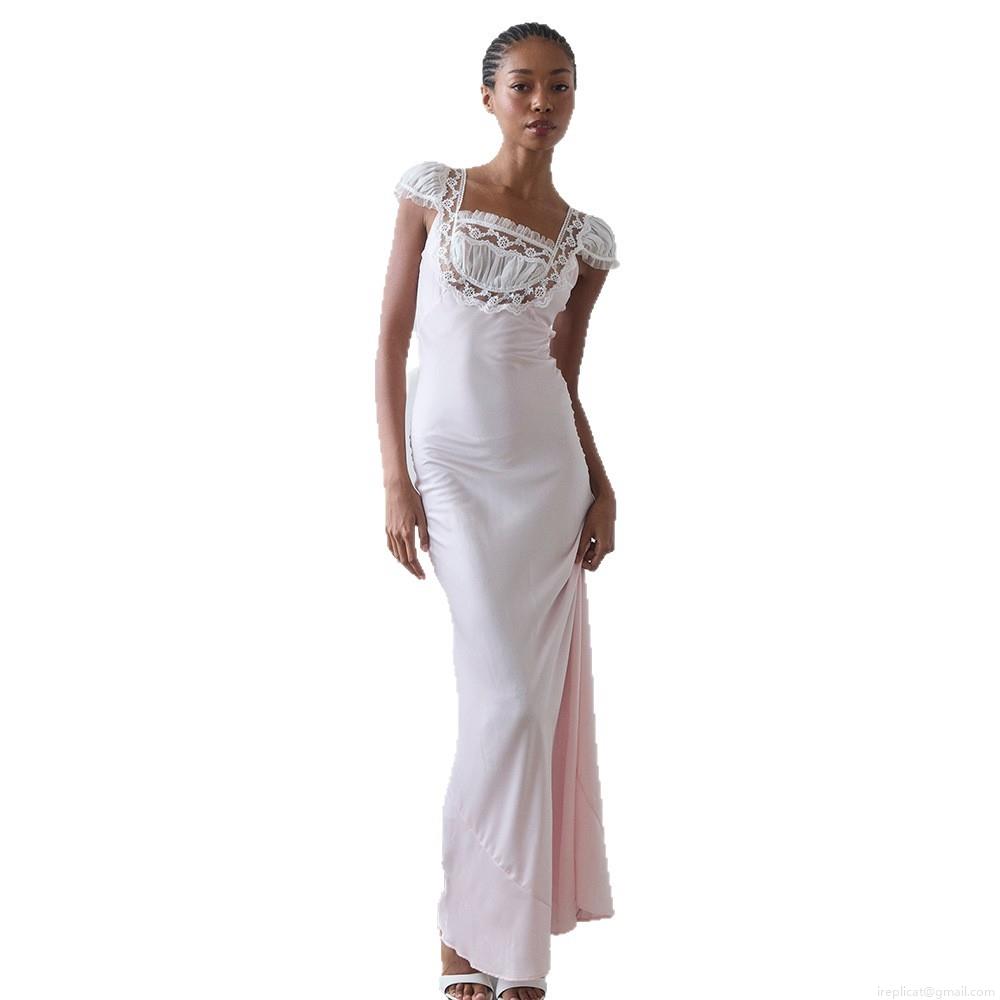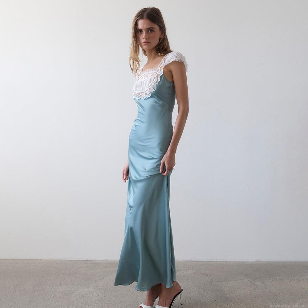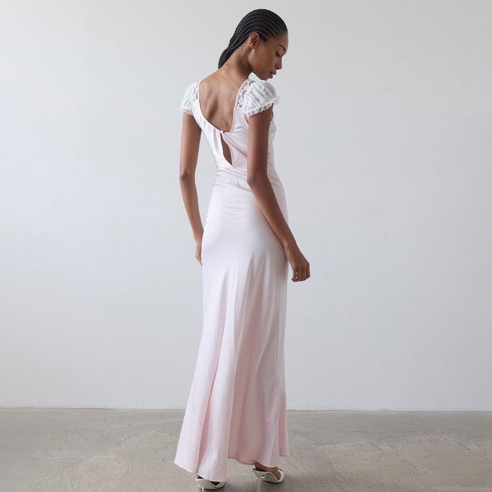 Sexy Backless Fishtail Maxi Dress With Lace Trim Satin Organza Patchwork Party Evening Dress For Women Streetwear Elegant Bodycon Long Dress
