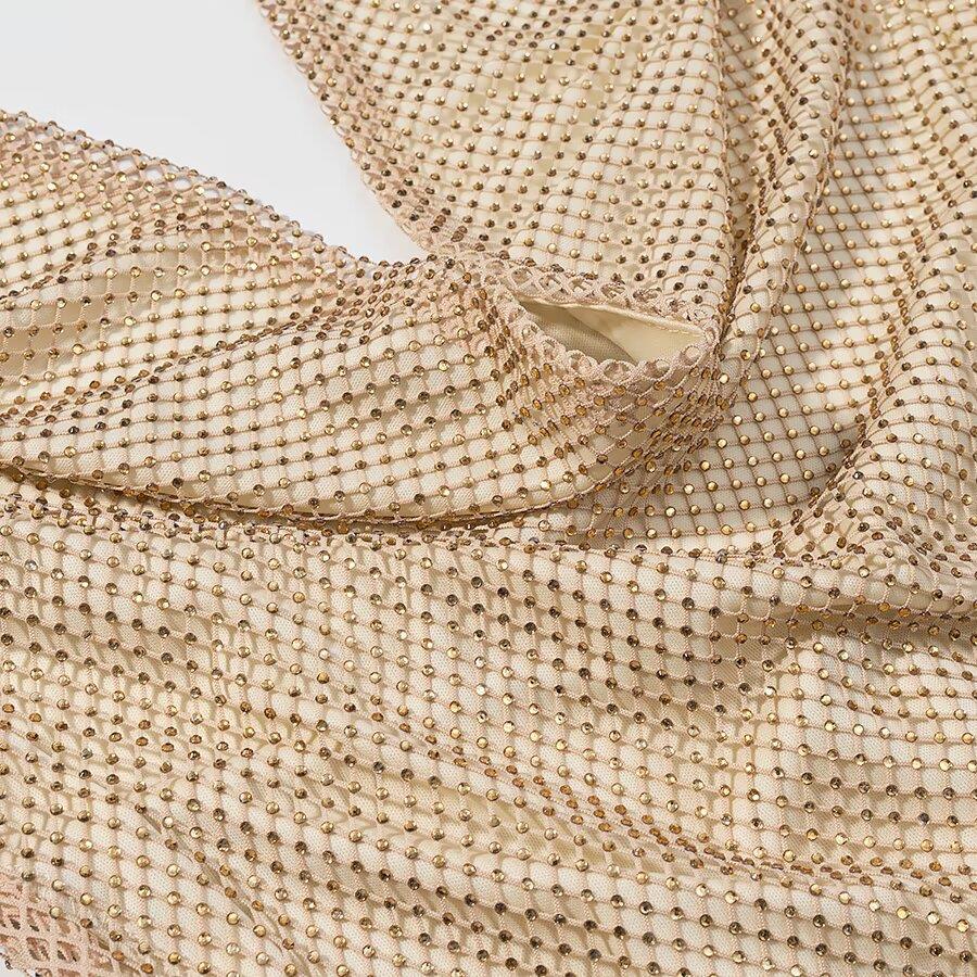• Sexy Backless Halter Maxi Dress For Women Champagne Gold Rhinestone Mesh Evening Party Gown Elegant A-Line Sleeveless Banquet Club Dress