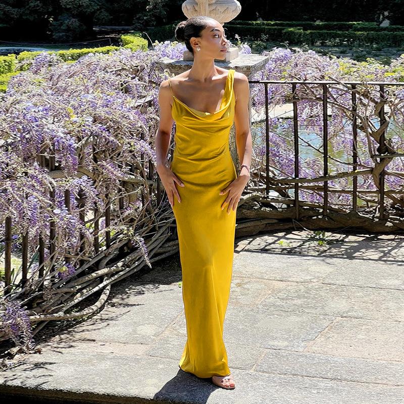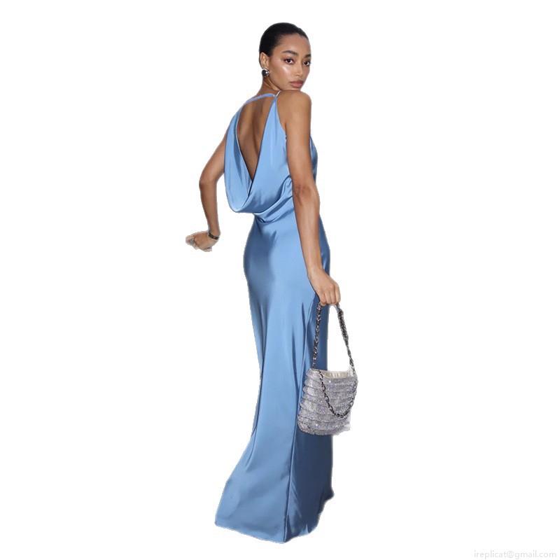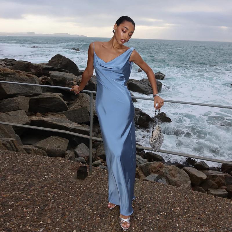 Sexy Backless Satin Maxi Dress Cowl Neck Spaghetti Strap Sleeveless Elegant Evening Party Long Slip Dress for Women