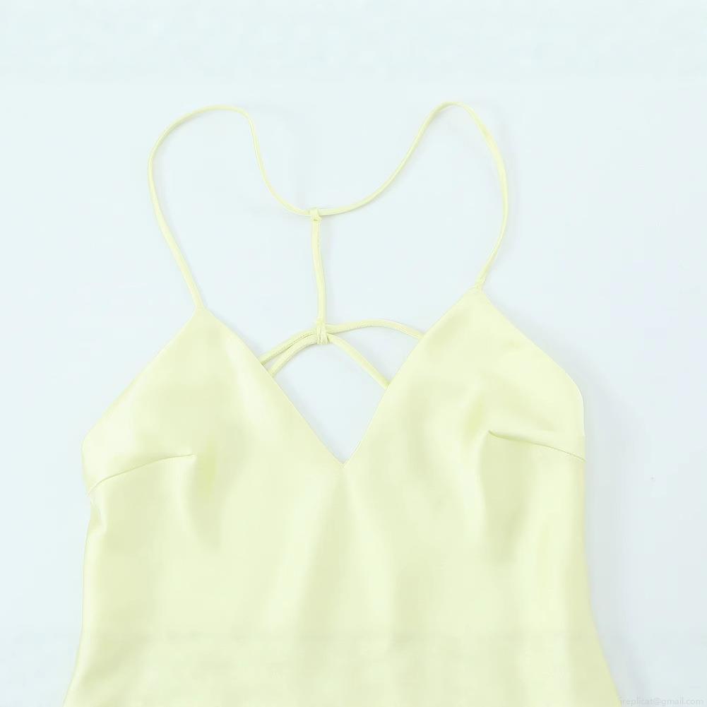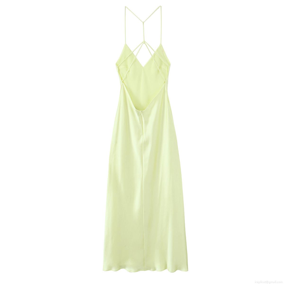 • Sexy Backless Satin Maxi Dress V-Neck Criss-Cross Strappy Lace-Up Silk Texture Evening Party Summer Dress for Women Elegant Slim Fit Neon Yellow Long Dress