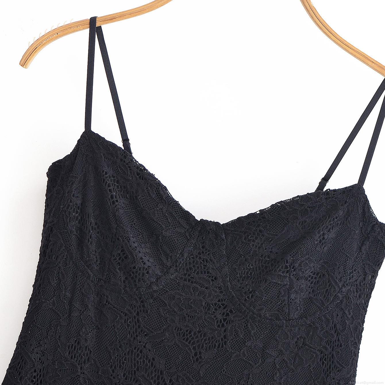 • Sexy Black Lace Cami Maxi Dress With Backless High Slit Design Slim Fit Elegant Solid Color Sleeveless Long Dress For Women Party Banquet Summer