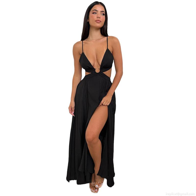 • Sexy Cami Maxi Dress For Women Polyester Spandex Blend Hollow Out Split V-Neck Sleeveless Backless Vacation Party Streetwear Slim Fit Long Dress