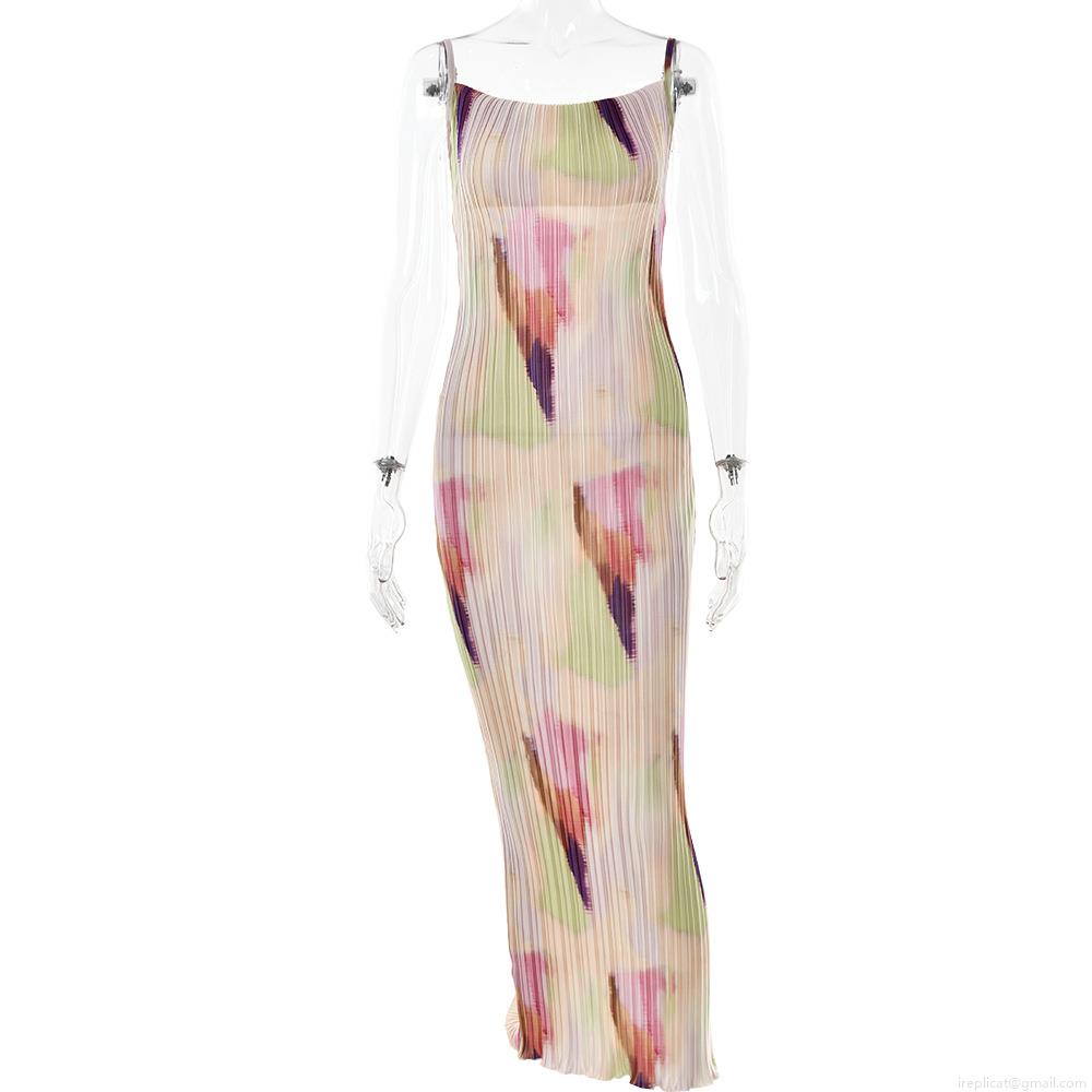 Tie Dye, Pleats, Collage, Backless, Abstract Print, Dangling