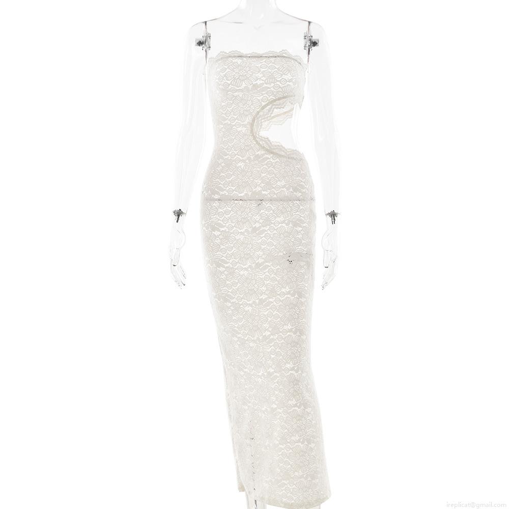 Solid Color, Splice, Lace, Hollow Out, Strapless, Forked