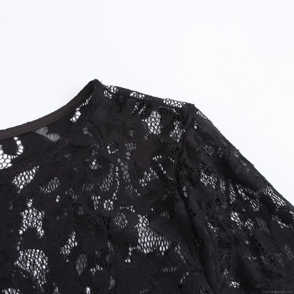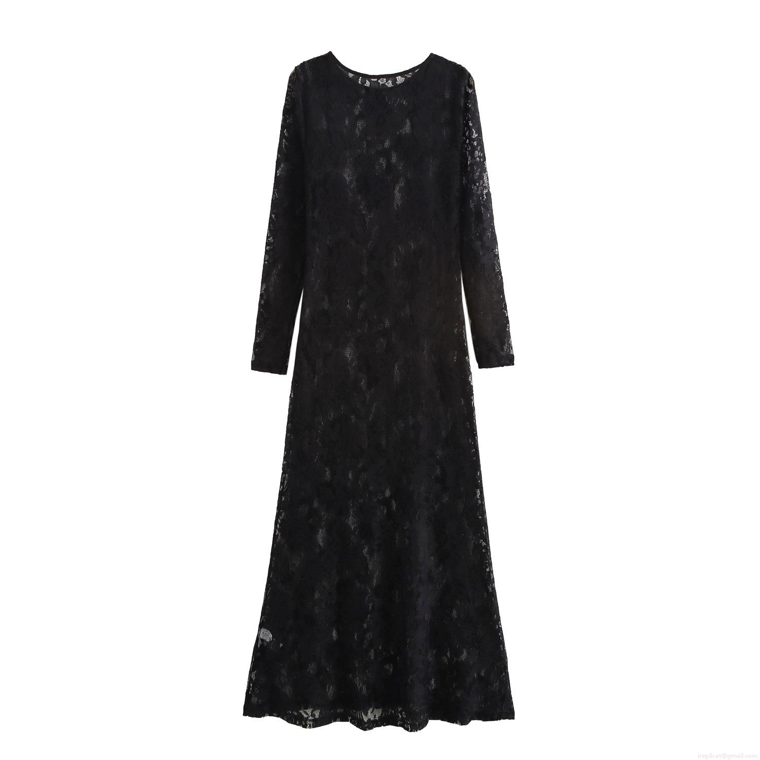 • Sexy French Lace Maxi Dress Women Round Neck Long Sleeve Slim Fit Bodycon Evening Party Long Gown Elegant Black Hollow Out Floral Dress