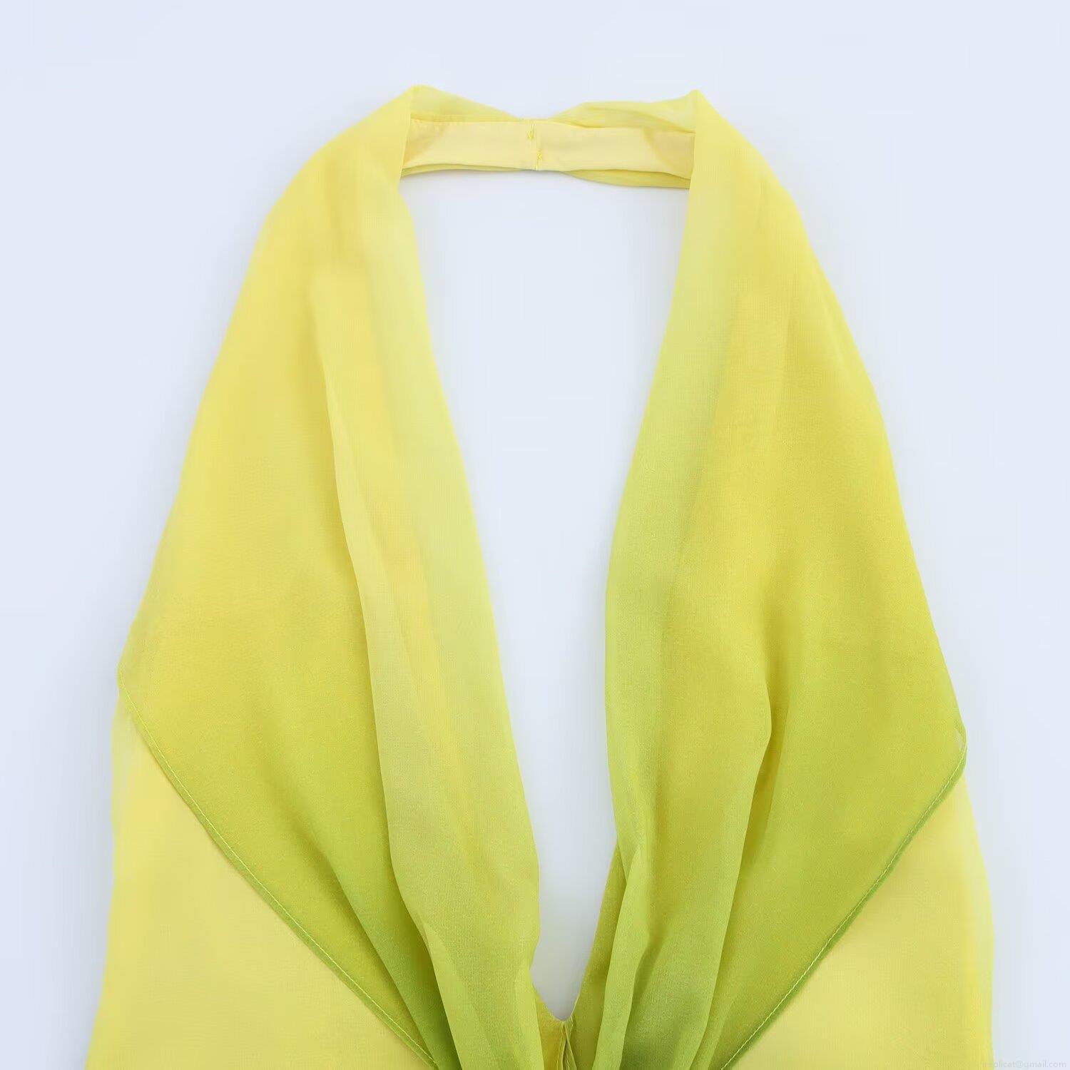 Pleats, Flowers, Printing, Gradient, Neckband, Backless