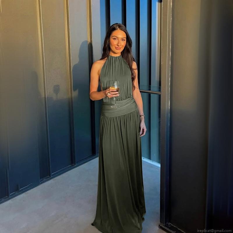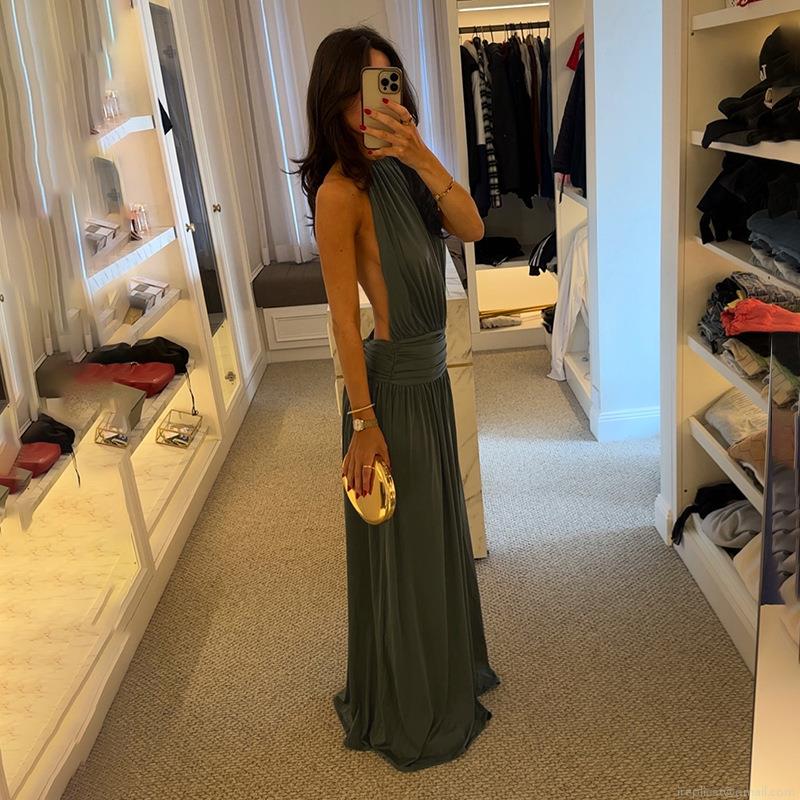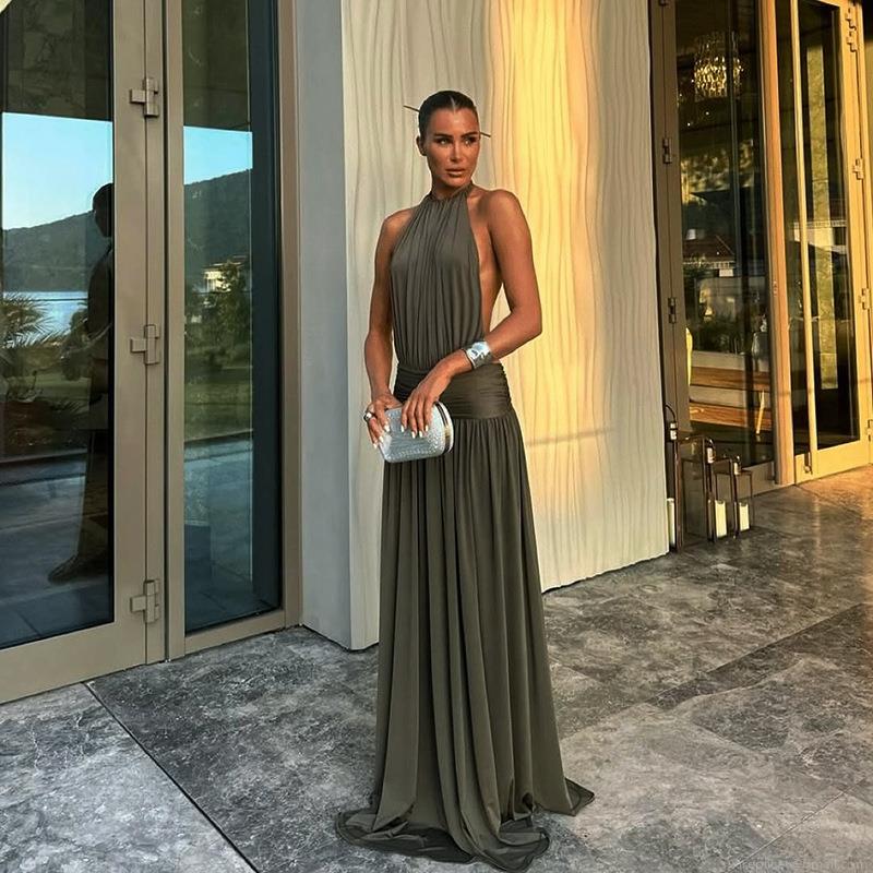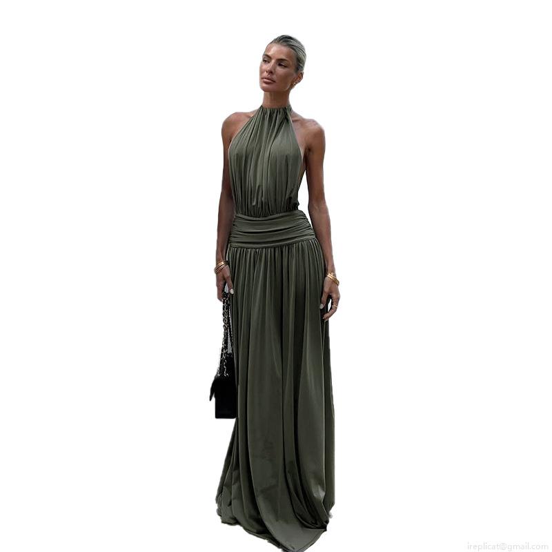 • Sexy Halter Backless Maxi Dress For Women Elegant Satin Polyester Ruched Bodycon Long Dress Evening Party Banquet Vacation Summer Autumn