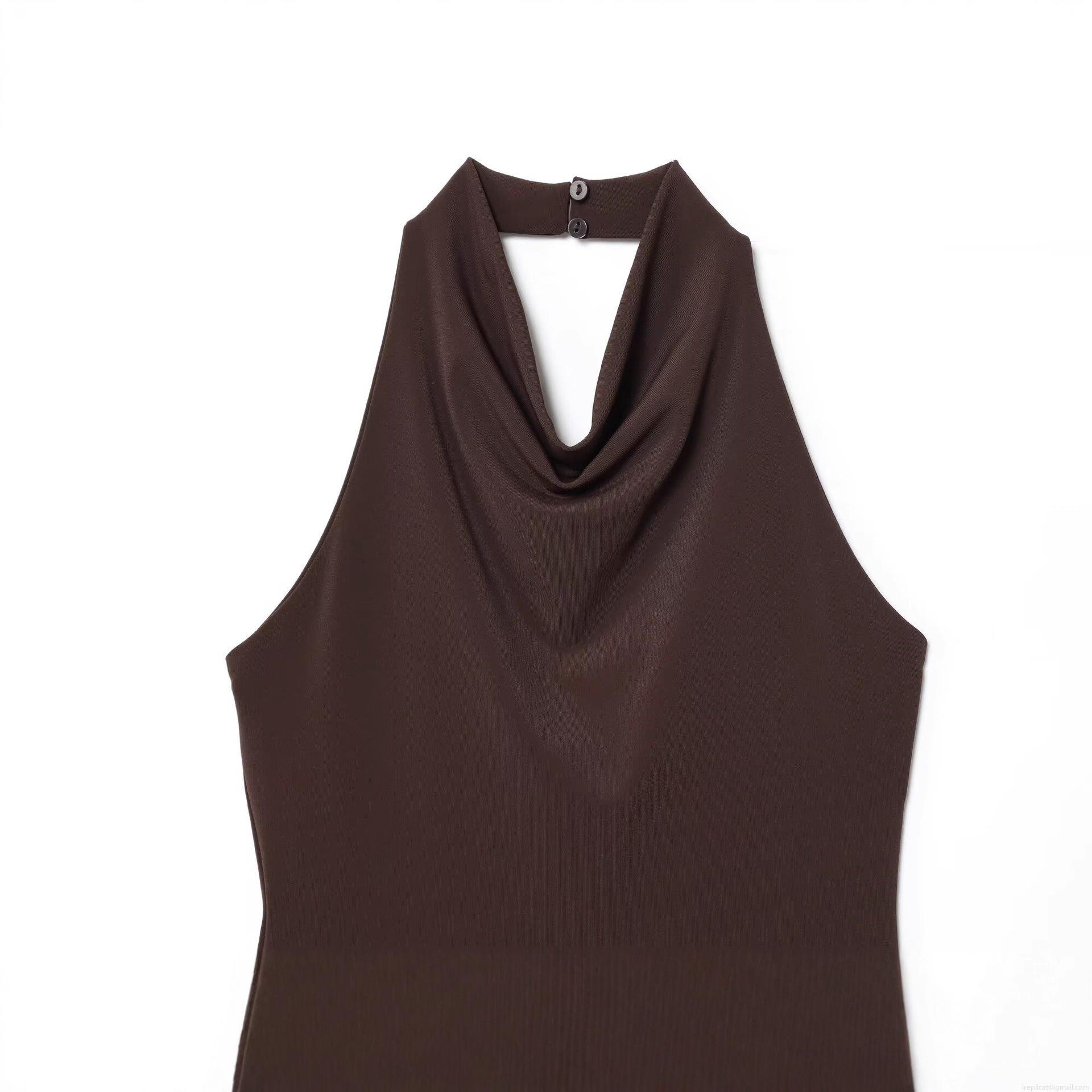 • Sexy Halter Backless Maxi Dress For Women Polyester And Mesh Patchwork Pleated Sleeveless Evening Party Club Long Dress Western Streetwear