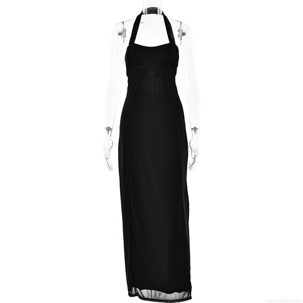 • Sexy Halter Neck Backless Maxi Dress for Women Polyester Milk Silk Mesh Patchwork Bodycon Long Evening Party Dress Elegant Formal Clubwear Slim Fit