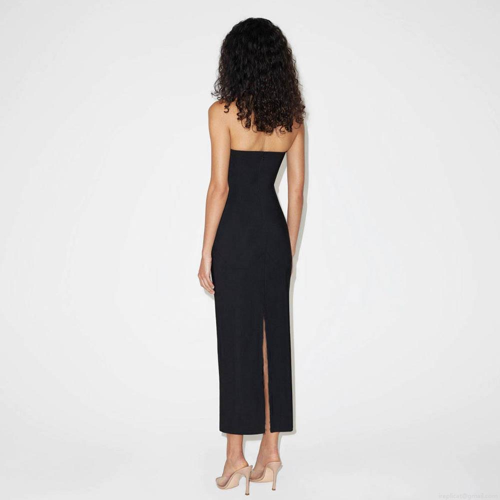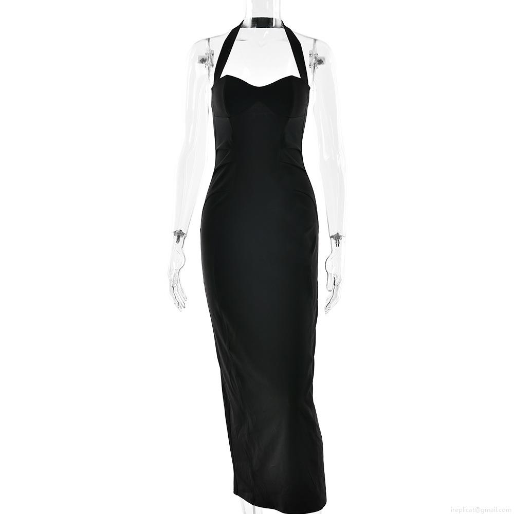 • Sexy Halter Neck Bandeau Maxi Dress Polyester Solid Color Side Slit Bodycon Dress For Women Summer Evening Party Clubwear Streetwear