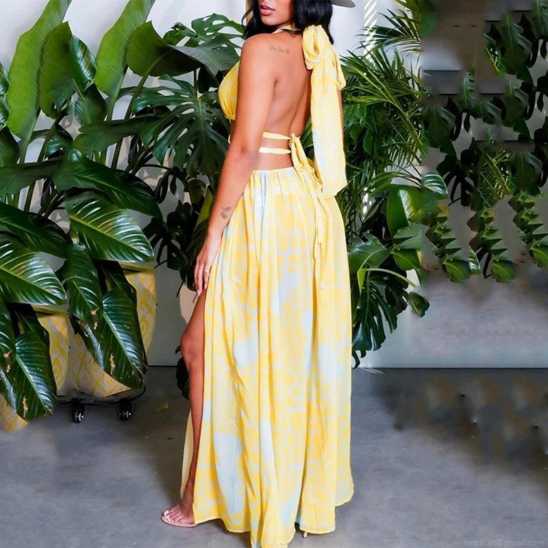 Sexy Halter Neck Cut Out Maxi Dress Printed Sleeveless Backless High Slit Long Sundress For Women Party Beach Vacation Nightclub Dress