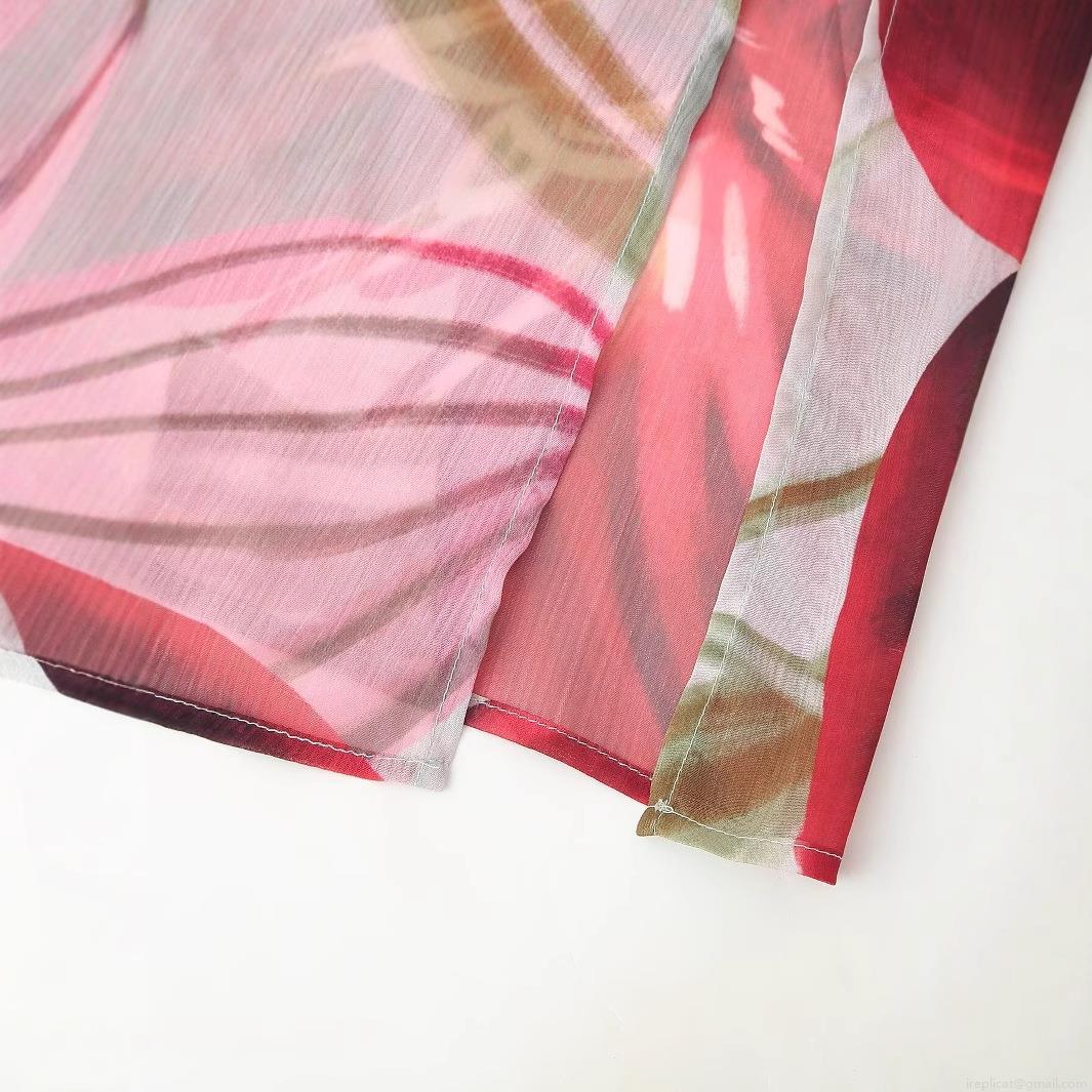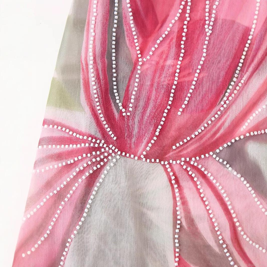 Handmade Beading, Waist shaping, Printing, Neckband, Lace, Backless, Tropical Flowers