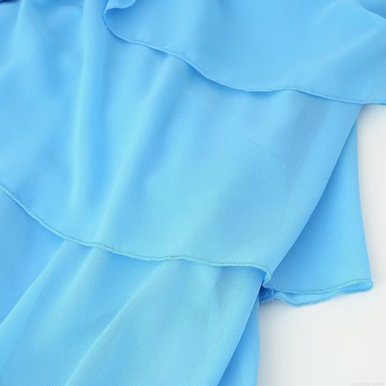 Solid Color, Three-dimensional Flowers, Backless, Multi-layered Ruffles, Cross-neck
