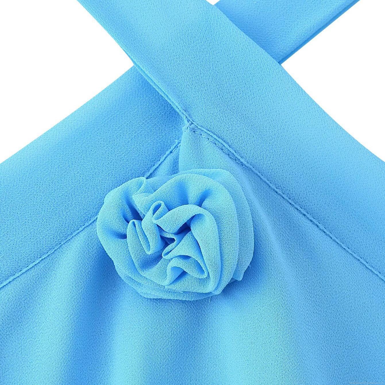 • Sexy Halter Neck Maxi Dress Chiffon Polyester 3D Flower Backless Tiered Layered Ruffles Cake Skirt For Summer Party Wedding Women Dress