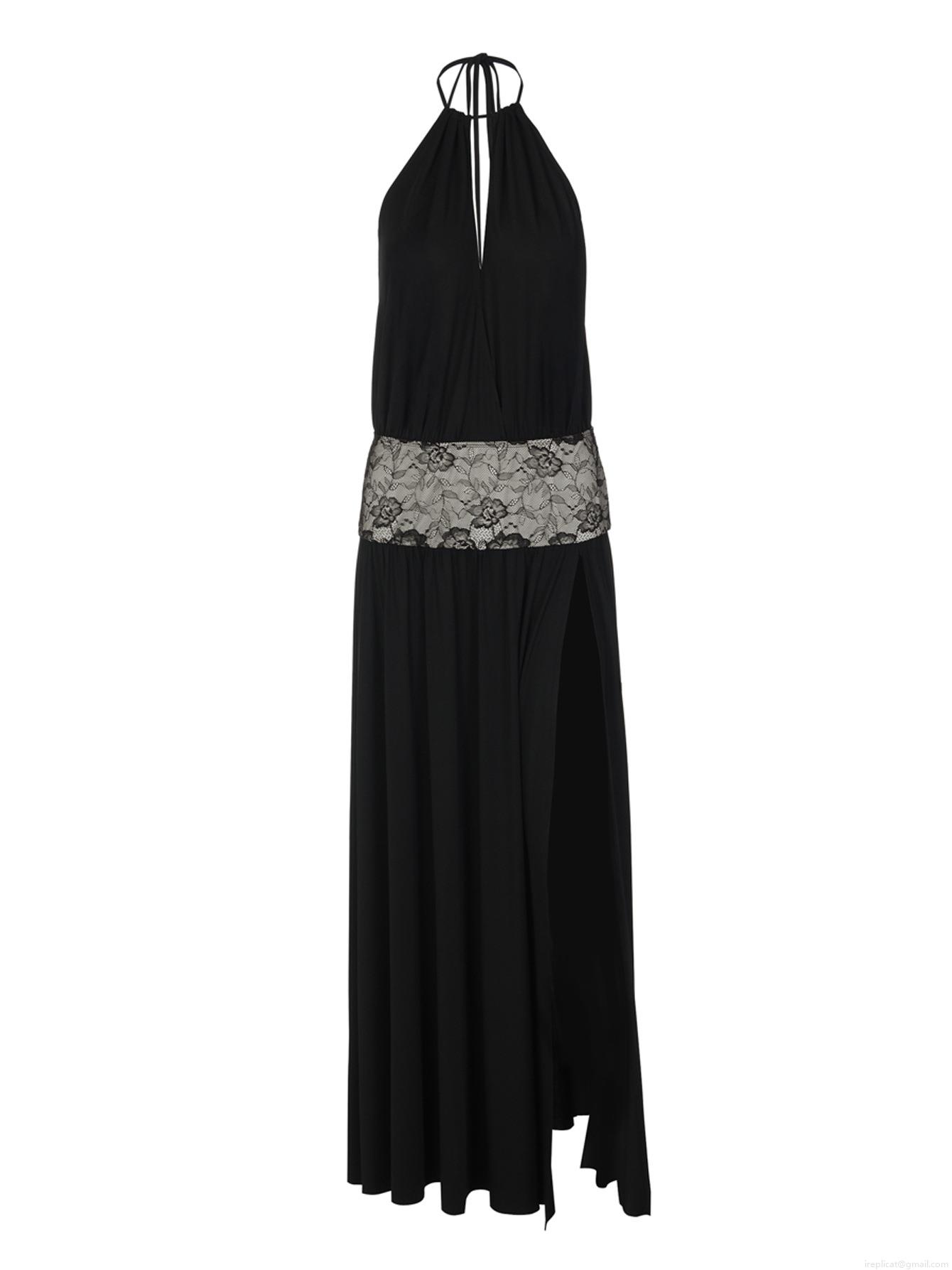 • Sexy Halter Neck Maxi Dress With Lace Patchwork Cut-out Backless Draped Neck High Slit Polyester Spandex Slim Fit For Women Banquet Party Night Club