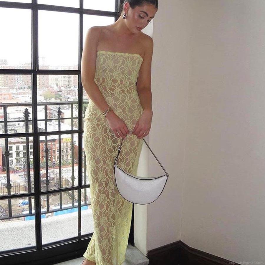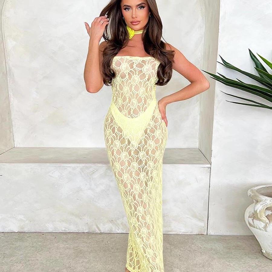 Sexy Lace See-Through Tube Top Maxi Dress Women Summer Sleeveless Slim Fit Party Dress Elegant Backless Beach Vacation Long Dresses