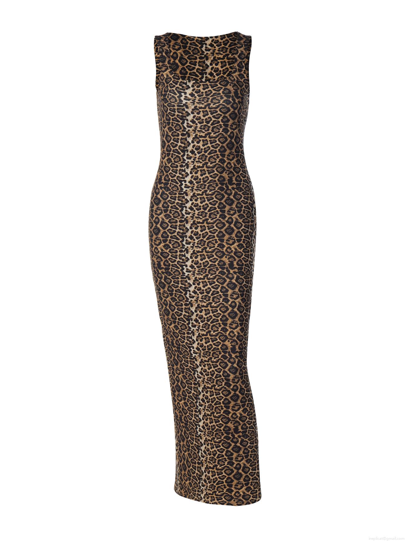 Sexy Leopard Print Bodycon Maxi Dress Stretch Polyester Spandex Sleeveless Square Neck Back Split High Waist Evening Party Clubwear For Women
