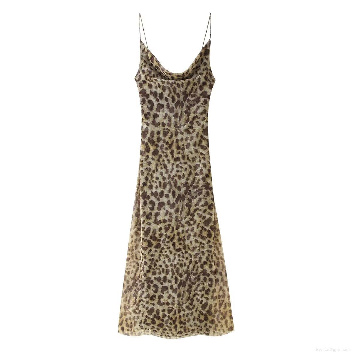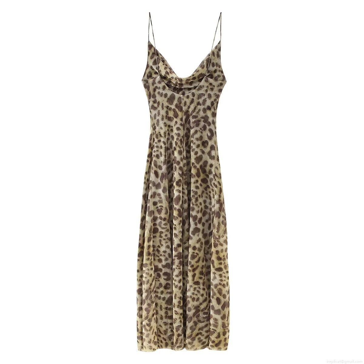 • Sexy Leopard Print Cowl Neck Maxi Dress For Women Sleeveless Spaghetti Strap 100% Polyester Summer Streetwear Party Clubwear Long Slip Dress