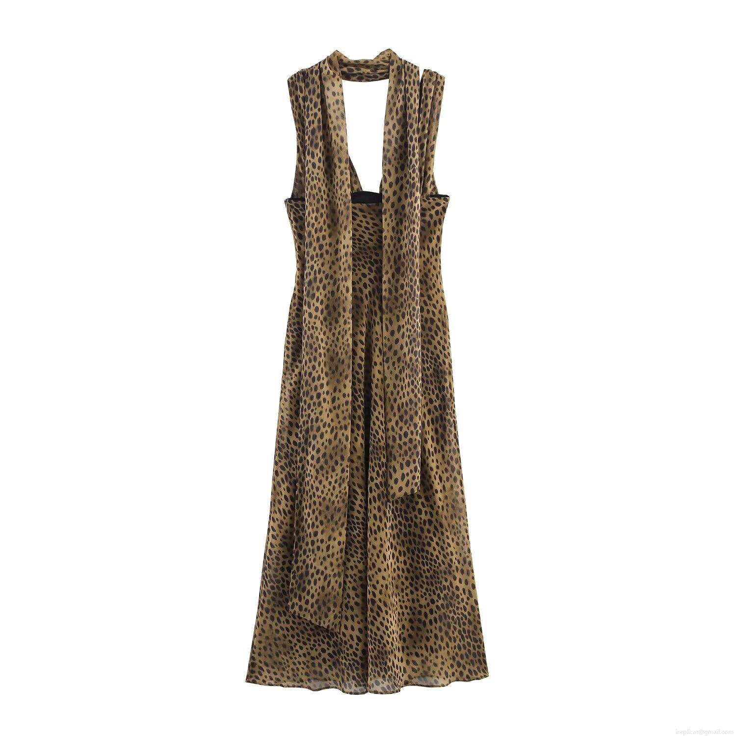 • Sexy Leopard Print Halter Neck Deep V Backless Chiffon Maxi Dress For Women Summer Vacation Sleeveless Long Beach Dress Elegant Party Wear