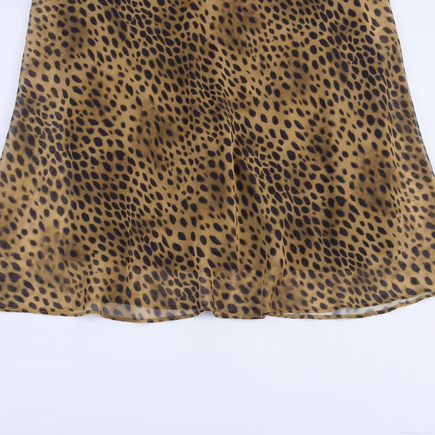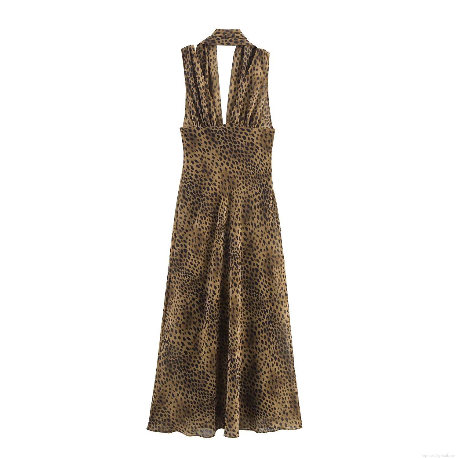 Sexy Leopard Print Halter Neck Deep V Backless Chiffon Maxi Dress For Women Summer Vacation Sleeveless Long Beach Dress Elegant Party Wear