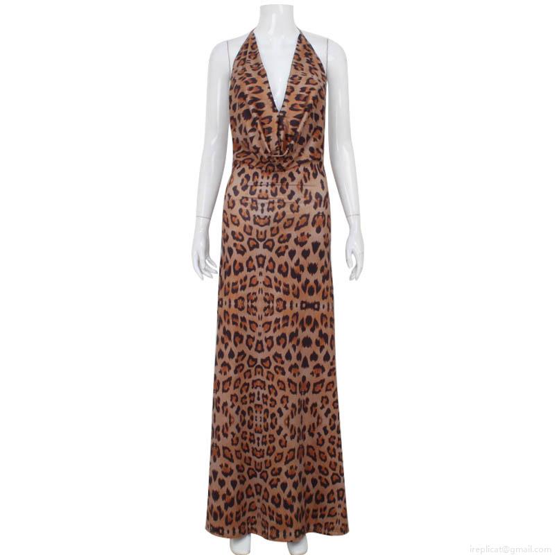 • Sexy Leopard Print Halter Neck Maxi Dress For Women Elegant Backless V Neck Slim Fit Satin Spandex Long Gown Dress For Evening Party Club Vacation