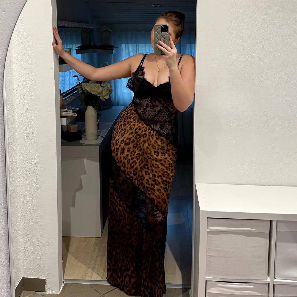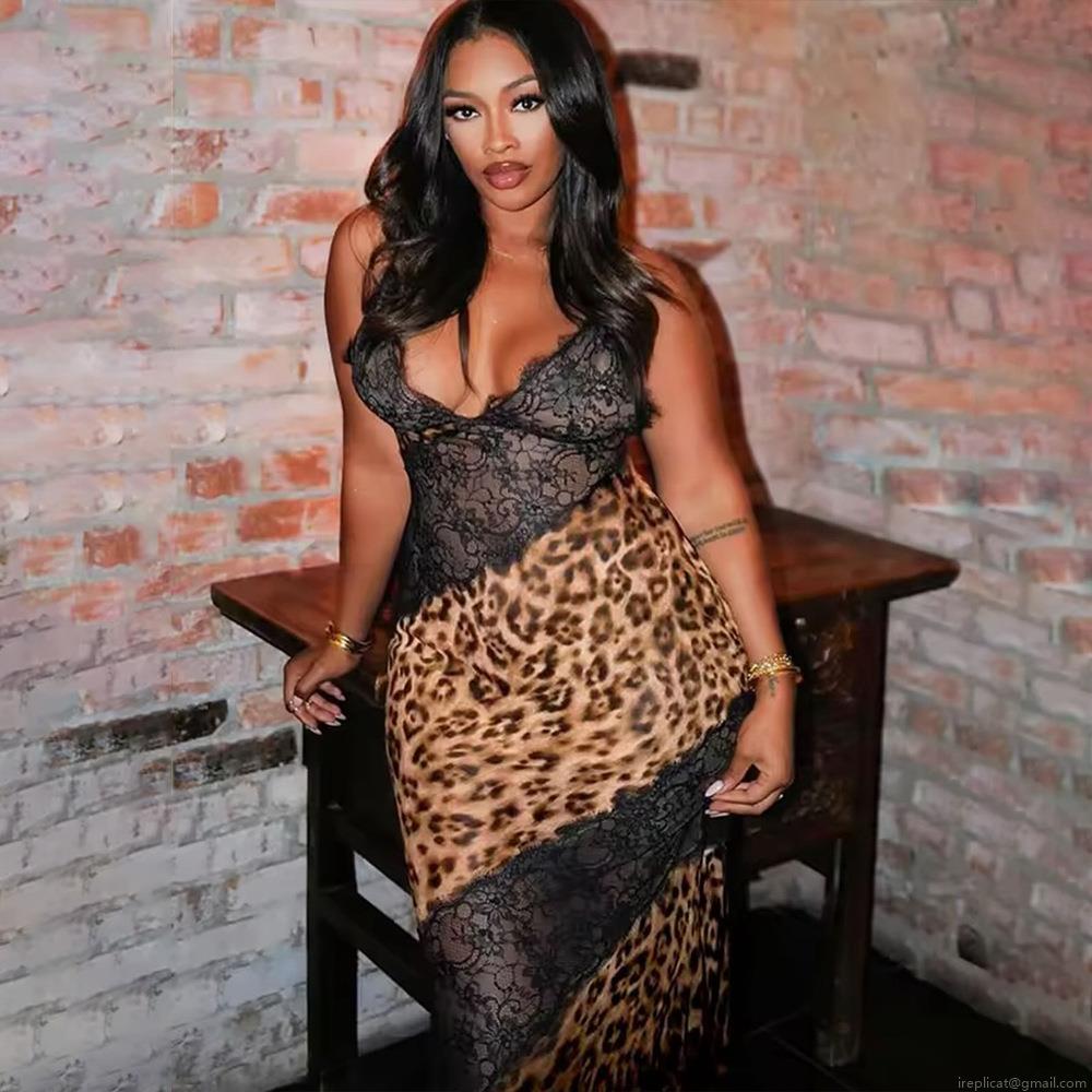 • Sexy Leopard Print Lace Stitching Maxi Cami Dress Women V Neck Sleeveless Chiffon Patchwork Long Dress Party Clubwear Night Out Streetwear