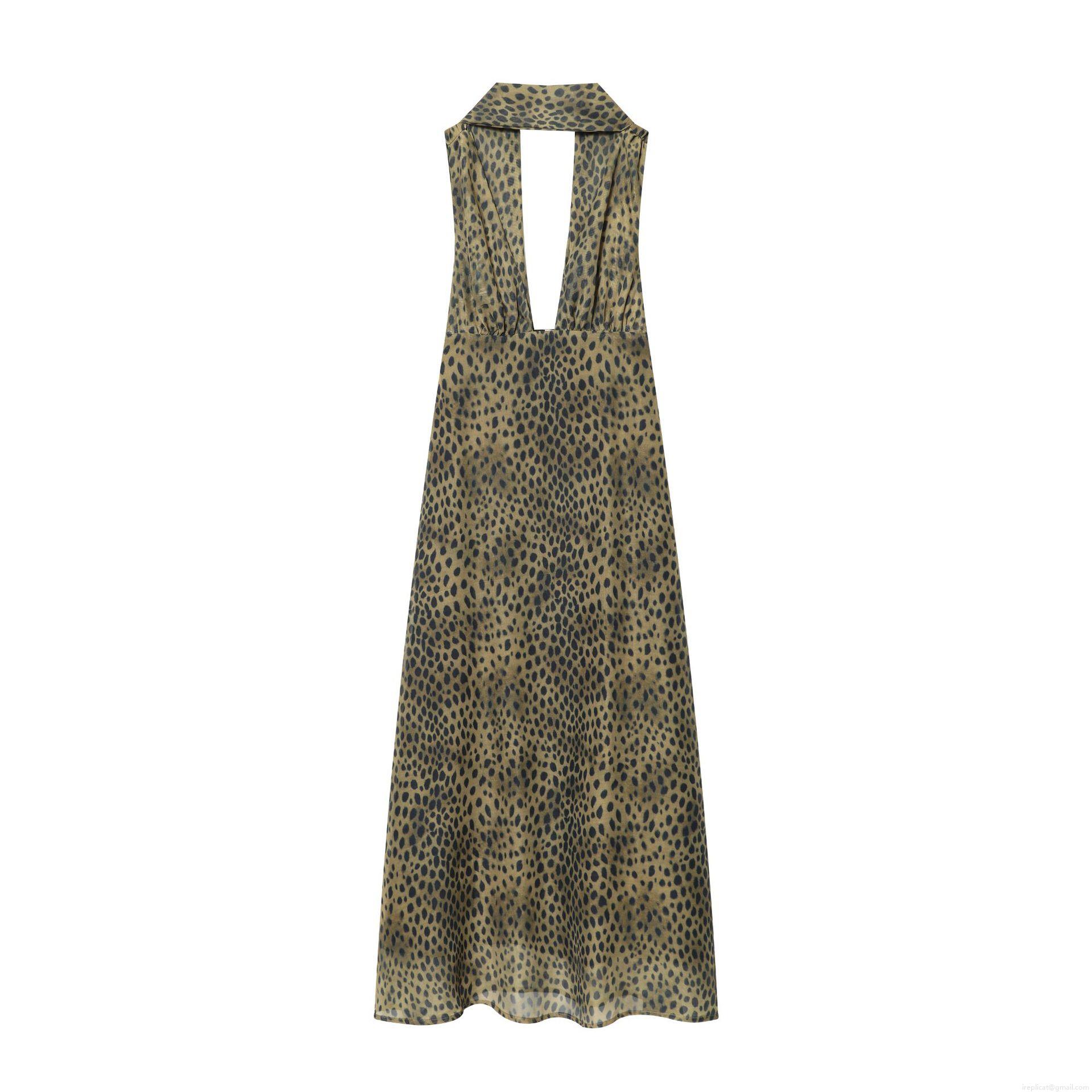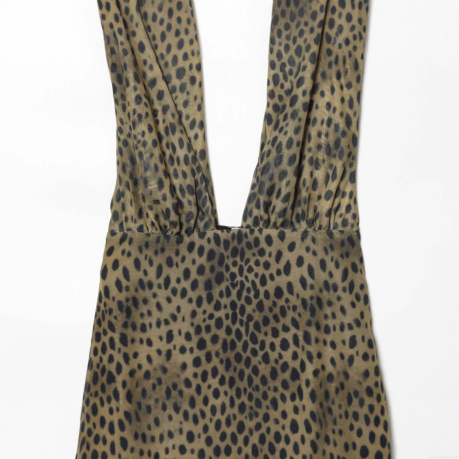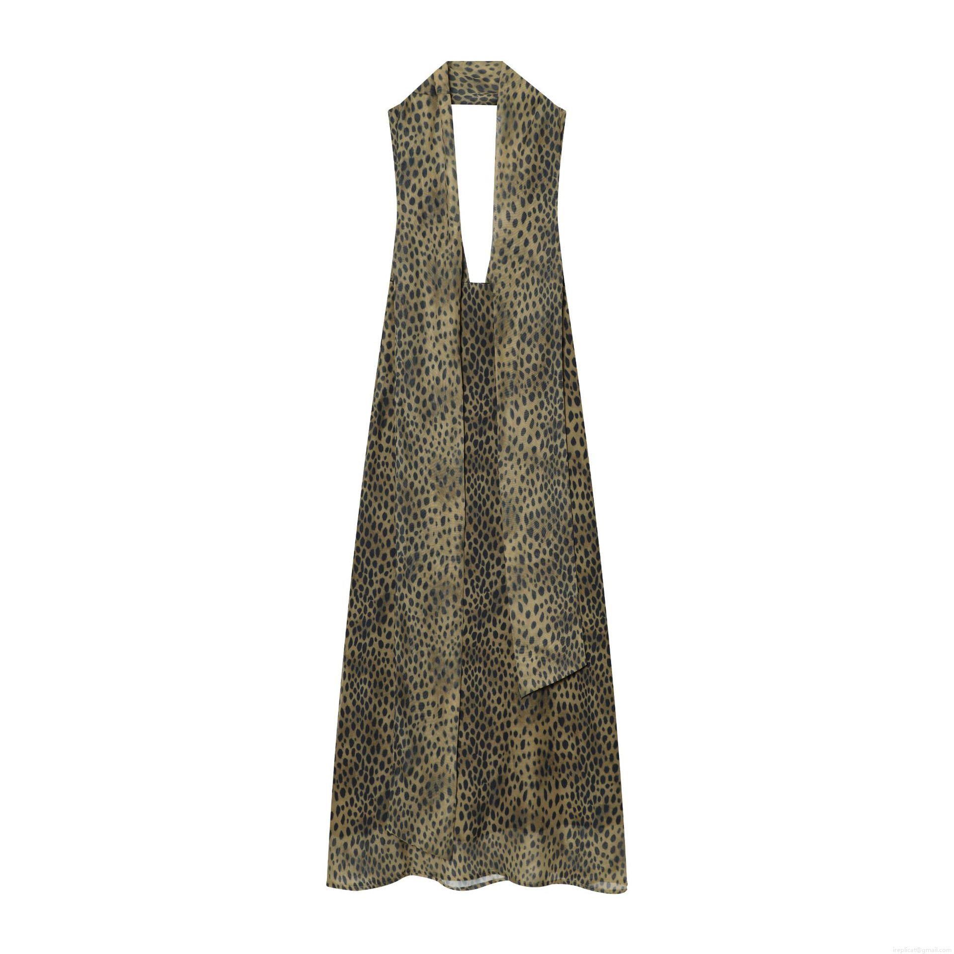 • Sexy Leopard Print Maxi Dress Women Halter Neck Deep V-Neck Backless Chiffon Bodycon Long Gown For Evening Party Club Summer Vacation