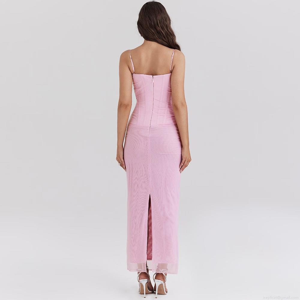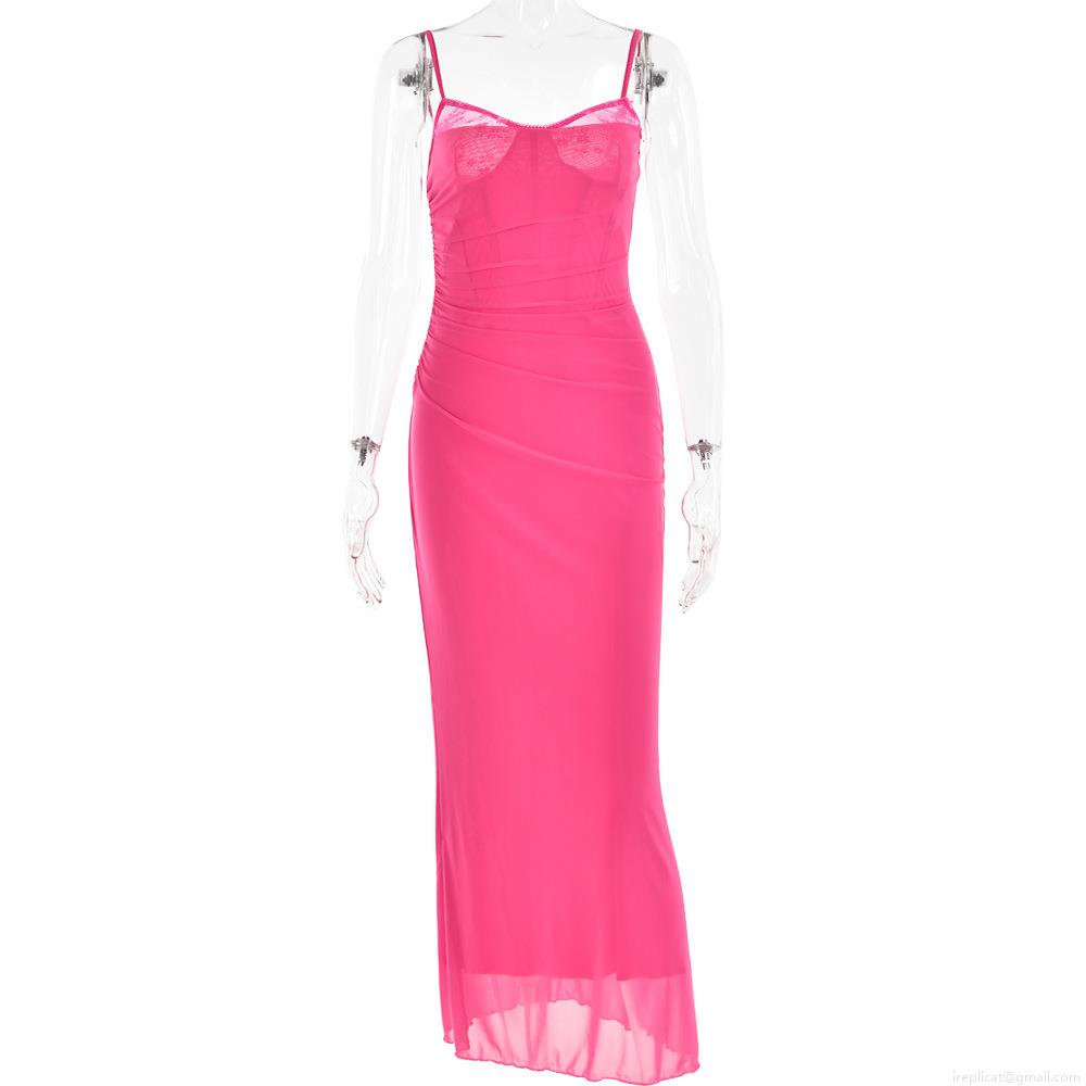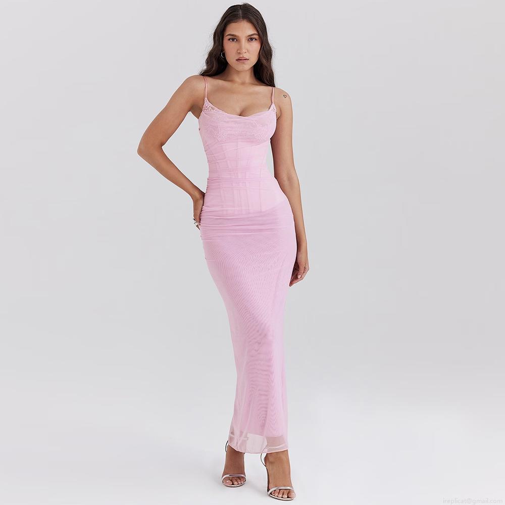 • Sexy Mesh Lace Patchwork Cami Maxi Dress For Women Elegant Backless High Slit Bodycon Party Evening Dress Polyester Sleeveless Strapless Long Dress