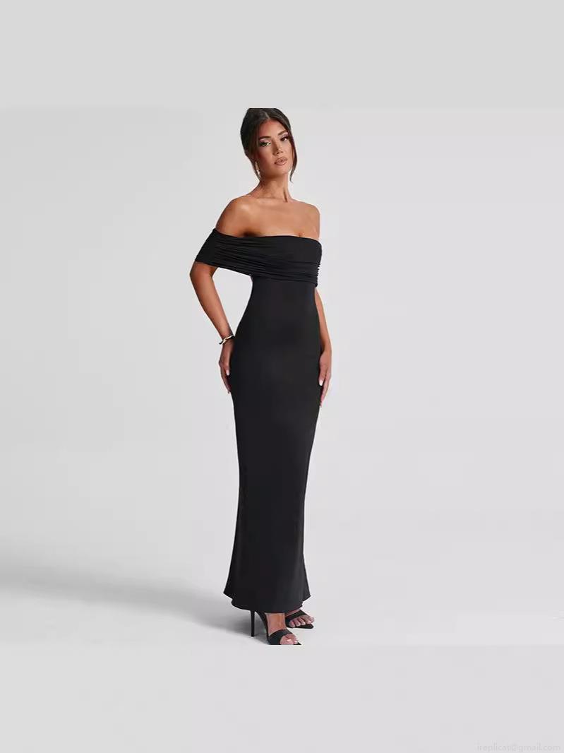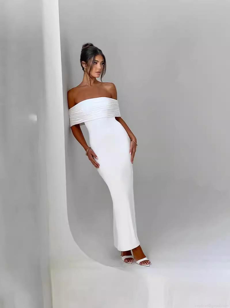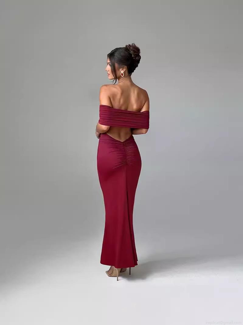 • Sexy Off Shoulder Backless Maxi Dress Women Ruched Bodycon Evening Party Long Gown Polyester Elastane Elegant Summer Clubwear Solid Color