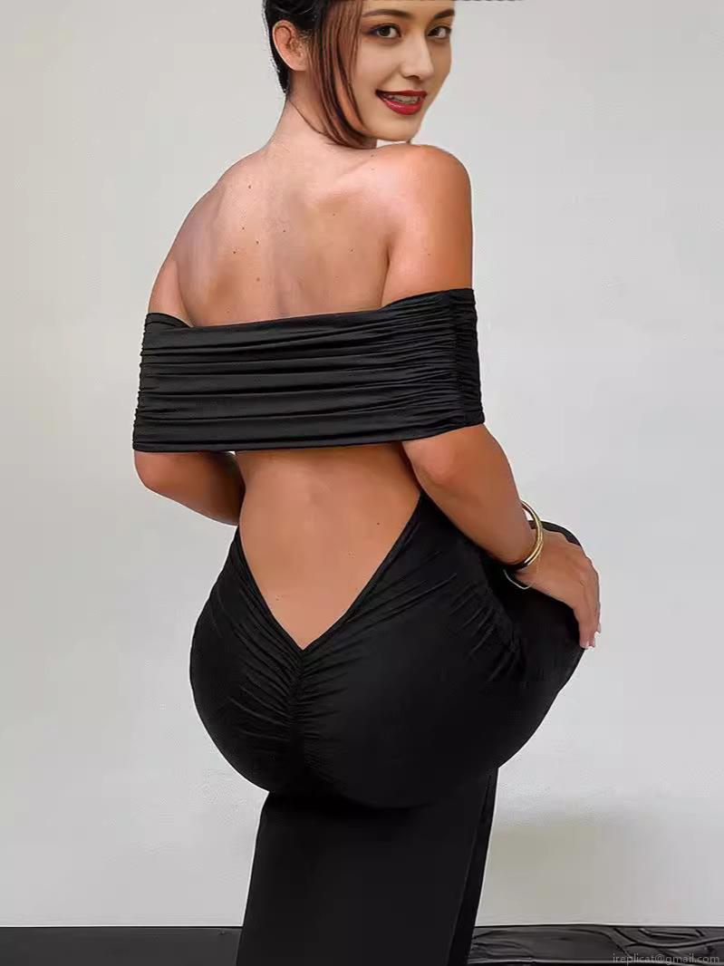Solid Color, Backless, Navel Exposed, Gathering, Off-the-shoulder Neckline, Hip Wrap