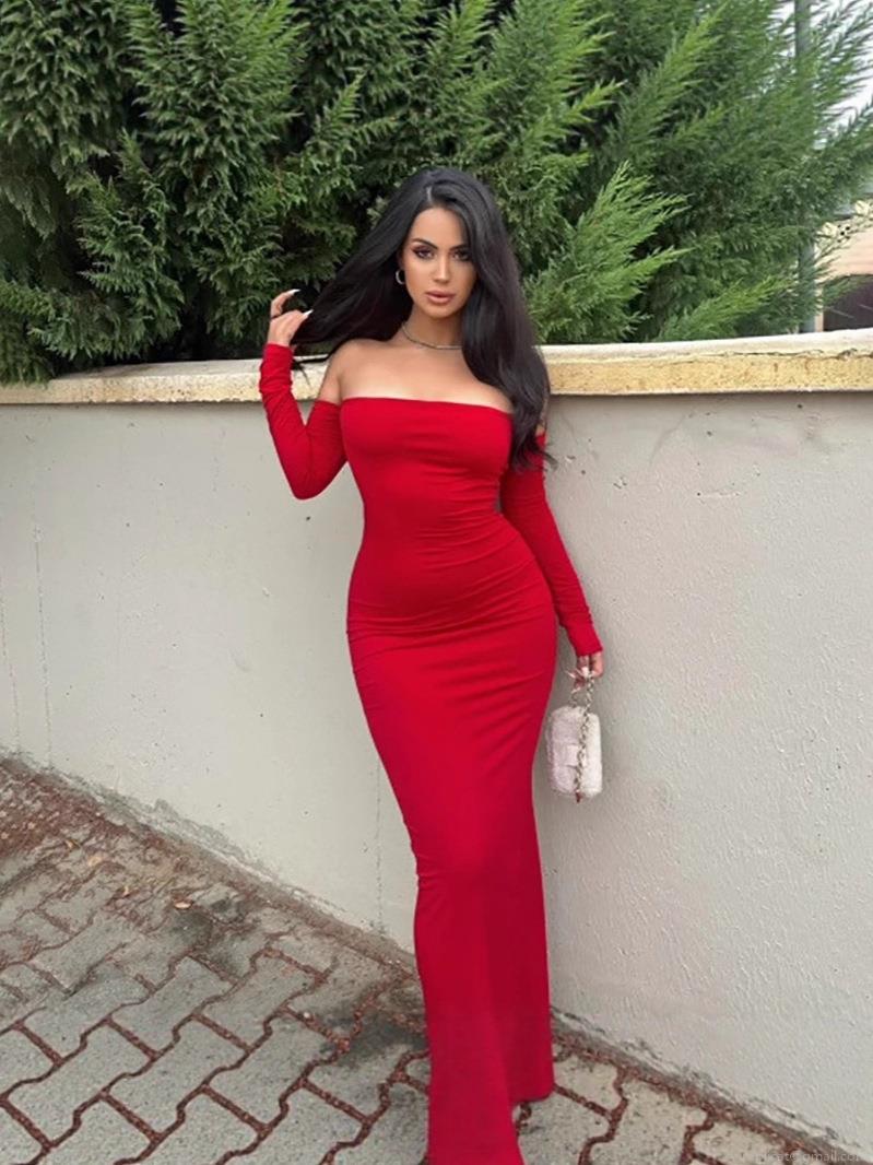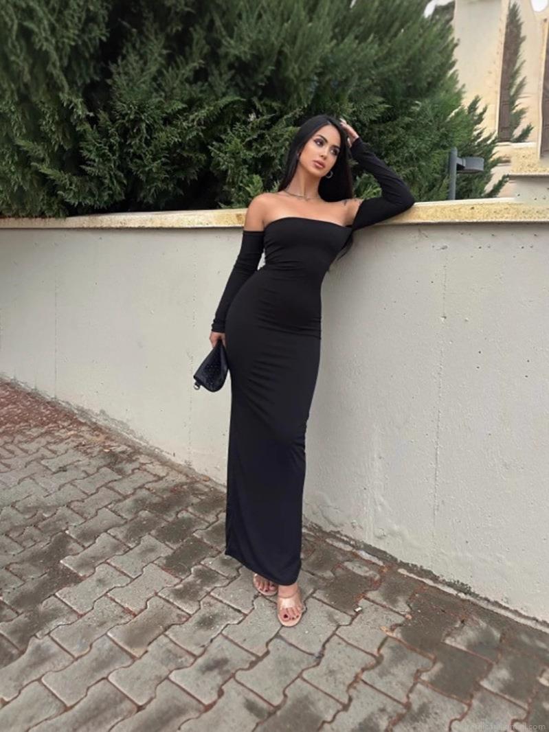 • Sexy Off-Shoulder Bodycon Maxi Dress With Arm Sleeves Solid Color Split Hem Milk Silk Tight Long Dress For Women Party Night Club Summer Streetwear