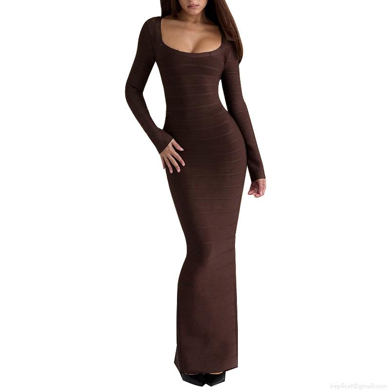 • Sexy Off-Shoulder Long Sleeve Bandage Maxi Dress Slim Fit Solid Bodycon Evening Party Gown For Women Elegant Knitted Polyester Spandex Clubwear