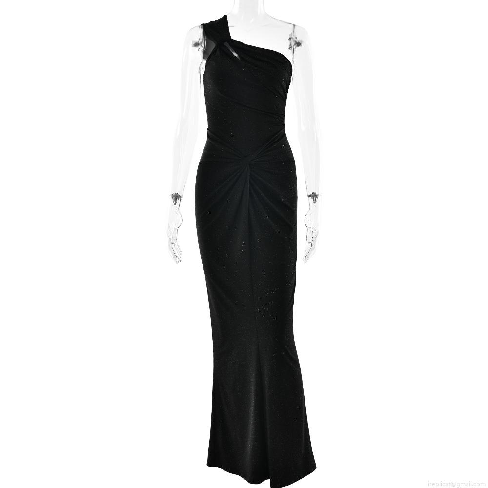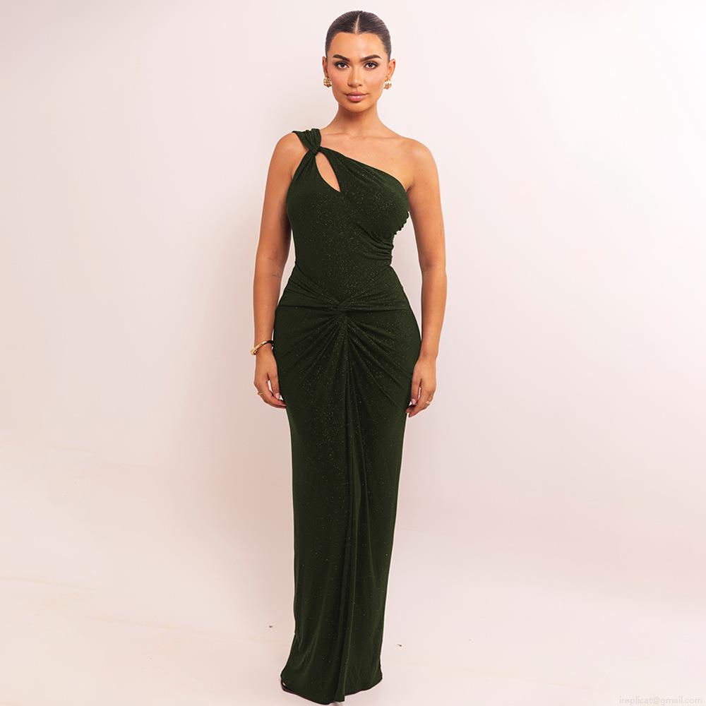 Solid Color, One Shoulder, Hollow Out, Pleats, Flash, Shiny, Glitter, Knot, High Fork