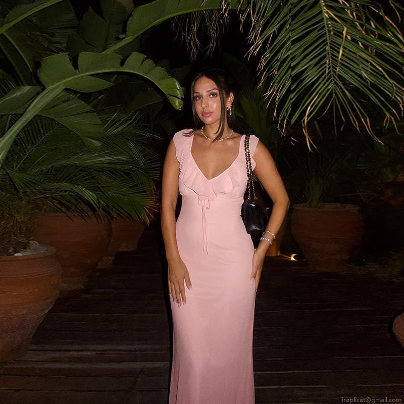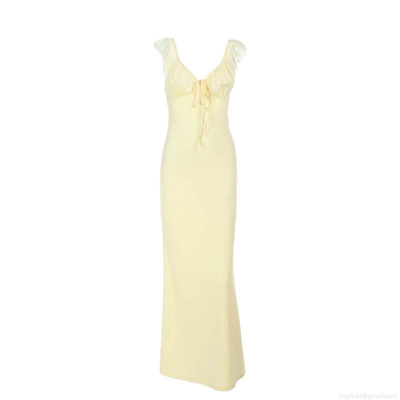 • Sexy Ruffle V-Neck Maxi Dress Women's Elegant Tie-Up Sleeveless Backless Slim Fit Evening Gown For Wedding Party Vacation Beach Summer Solid Color Polyester Spandex Dress