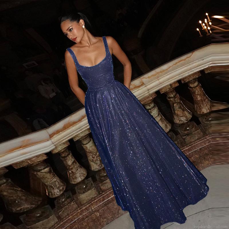 • Sexy Sequin Maxi Dress Women Square Neck Sleeveless Glitter Evening Party Gown Elegant Formal Prom Dress Polyester Spandex Ladies Luxury Long Dress