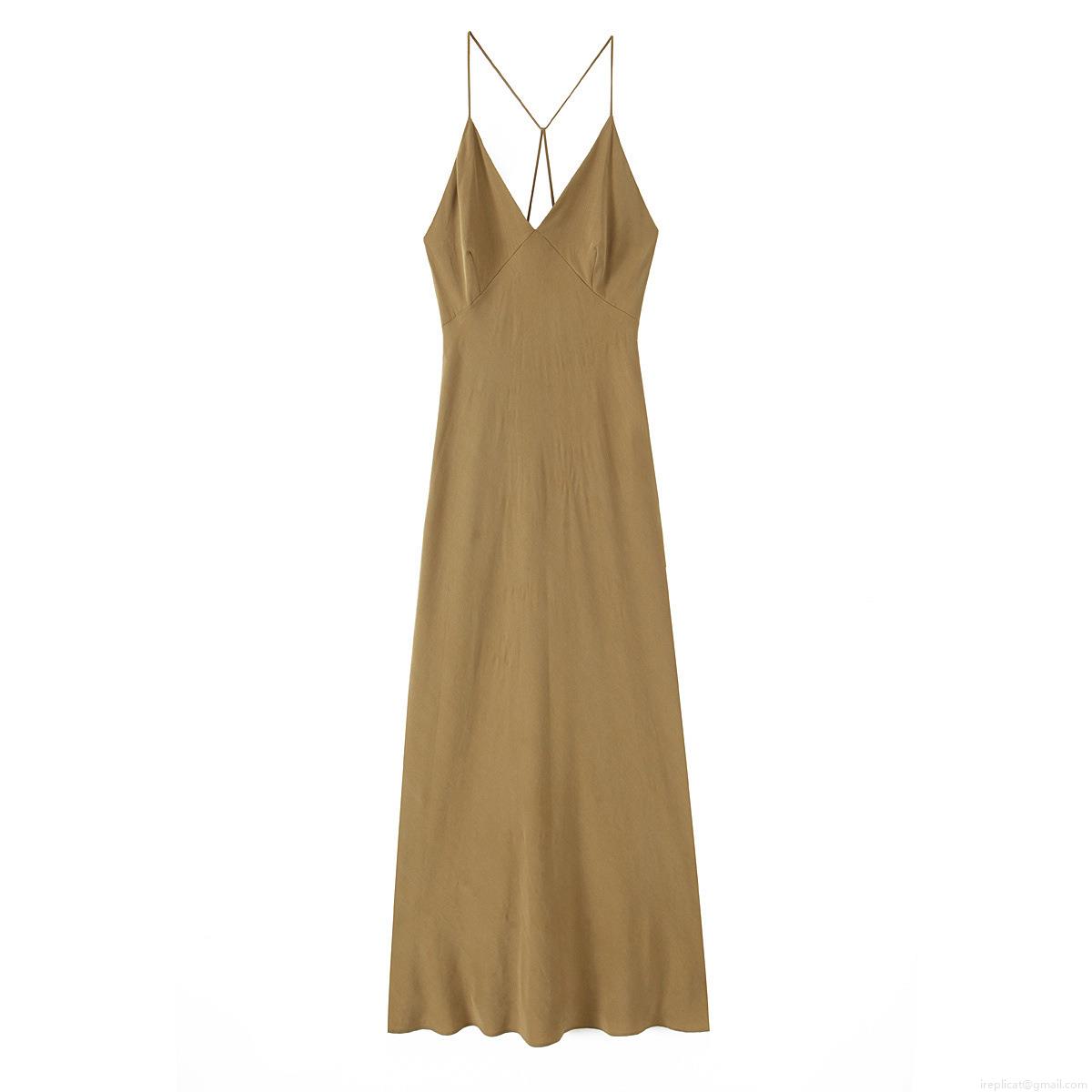 Solid Color, Backless, Deep V-neck, Thin Straps, Cross Straps On The Back