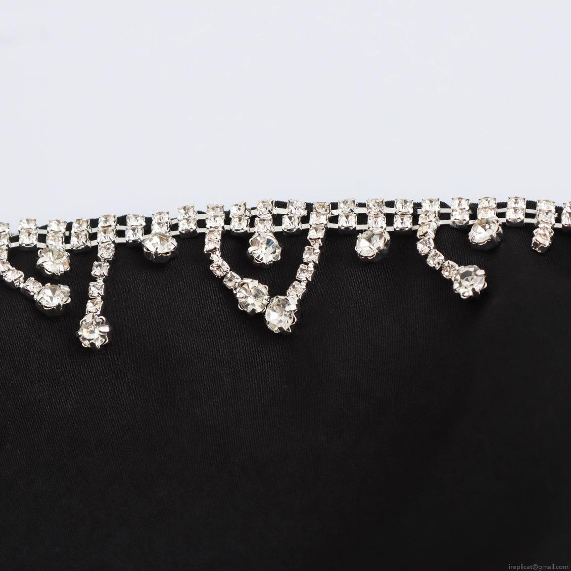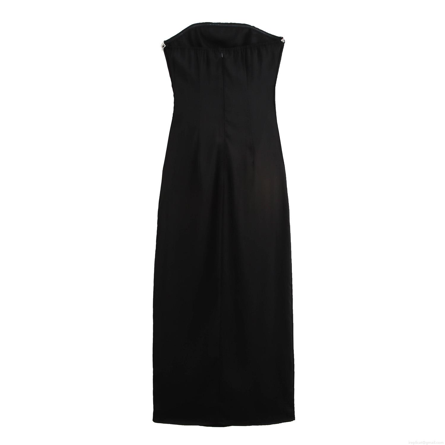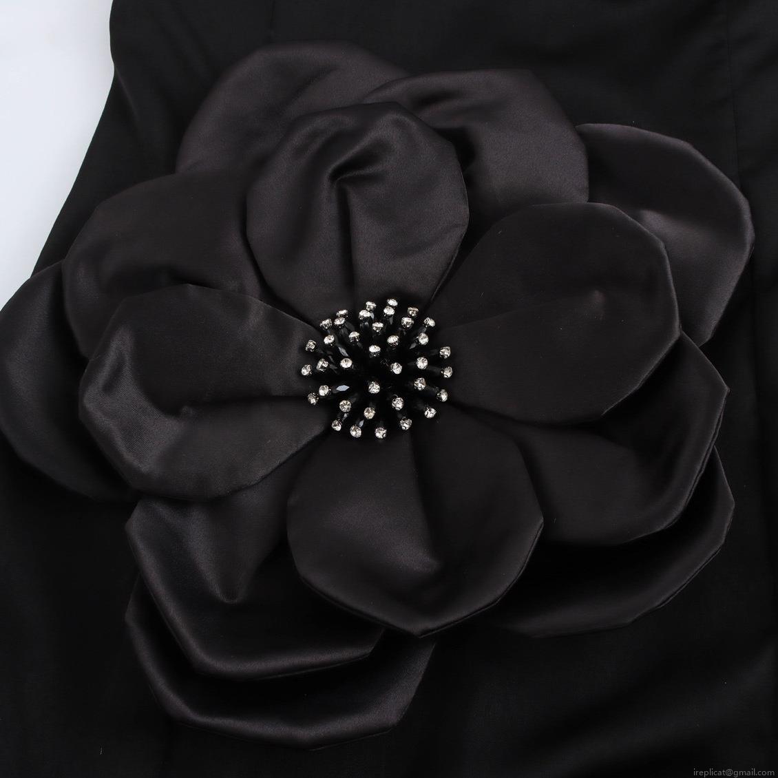• Sexy Strapless Bodycon Maxi Dress with 3D Satin Flower Rhinestone Fringe Elegant Black Satin Evening Gown for Banquet Wedding Party Women