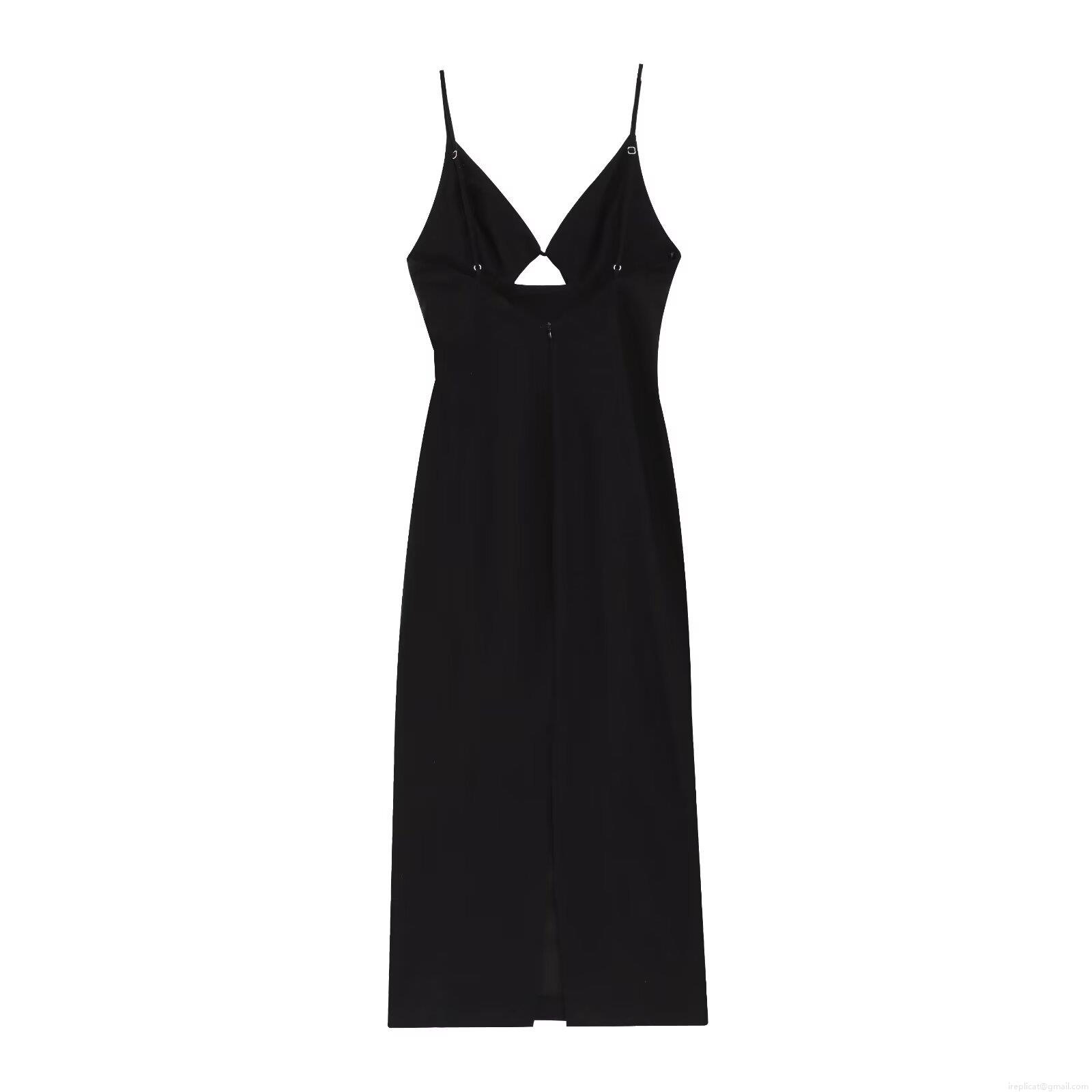 Solid Color, Hollow Out, V-neck, Forked, Thin Straps