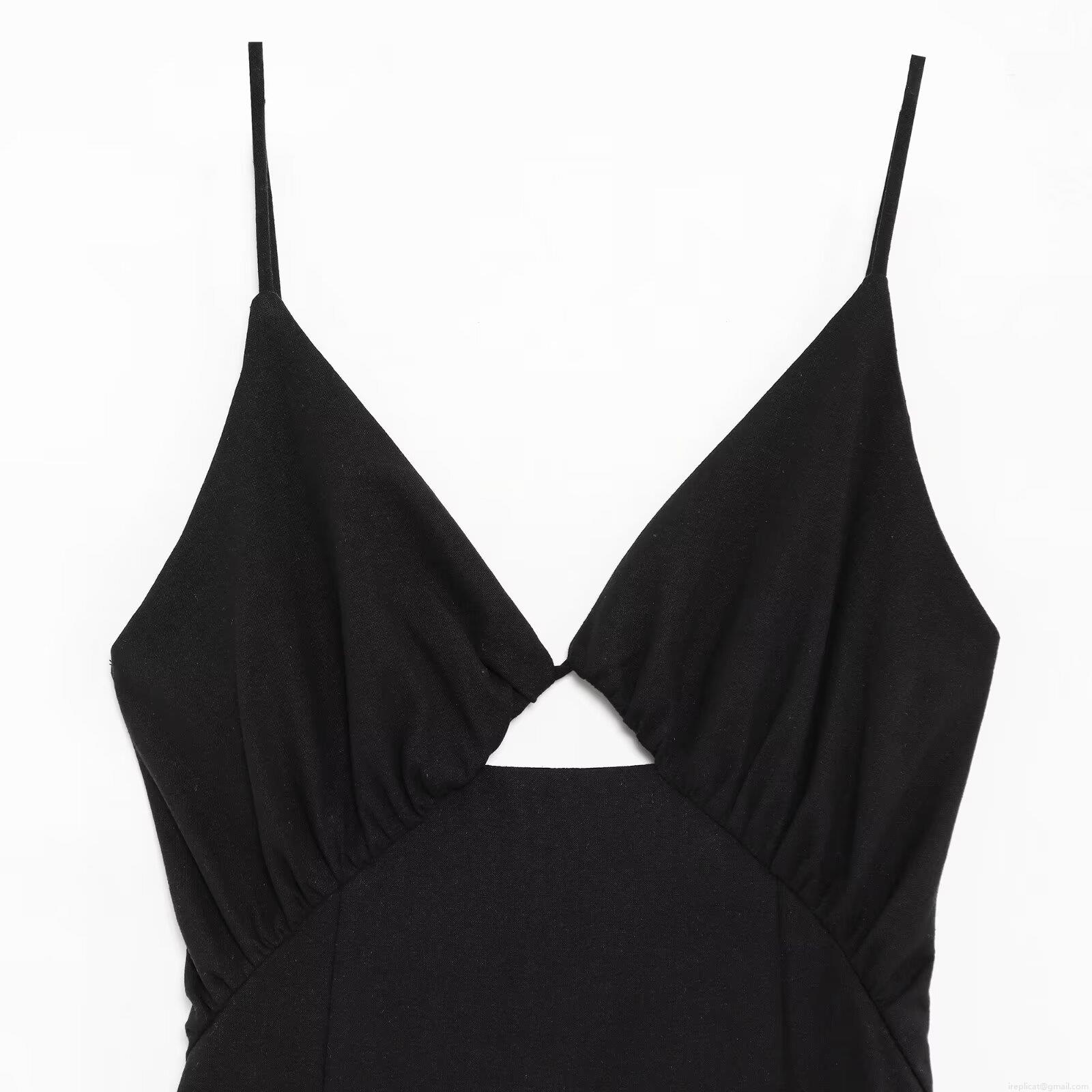 • Sexy V Neck Cut Out Maxi Dress For Women Elegant Solid Black Polyester Linen-like Fabric Slip Dress With Side Slit Adjustable Spaghetti Straps Slim Fit Evening Party Cocktail Dress