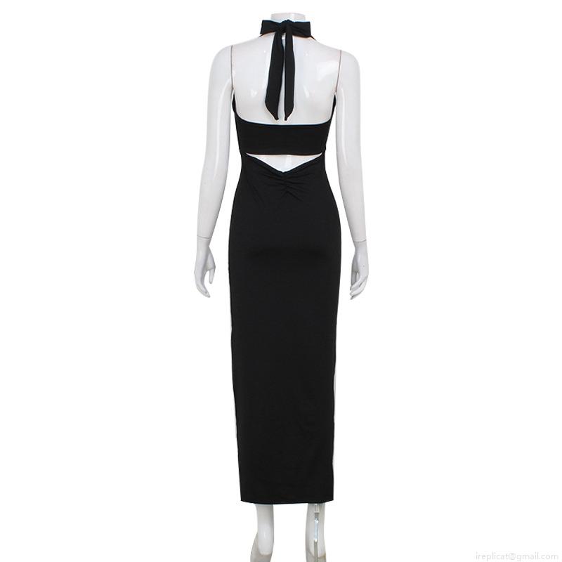 • Sexy Women Halter V-Neck Backless Maxi Dress Elegant Ruched Slim Fit Bodycon Summer Party Evening Long Dress Polyester Spandex Night Out Clubwear