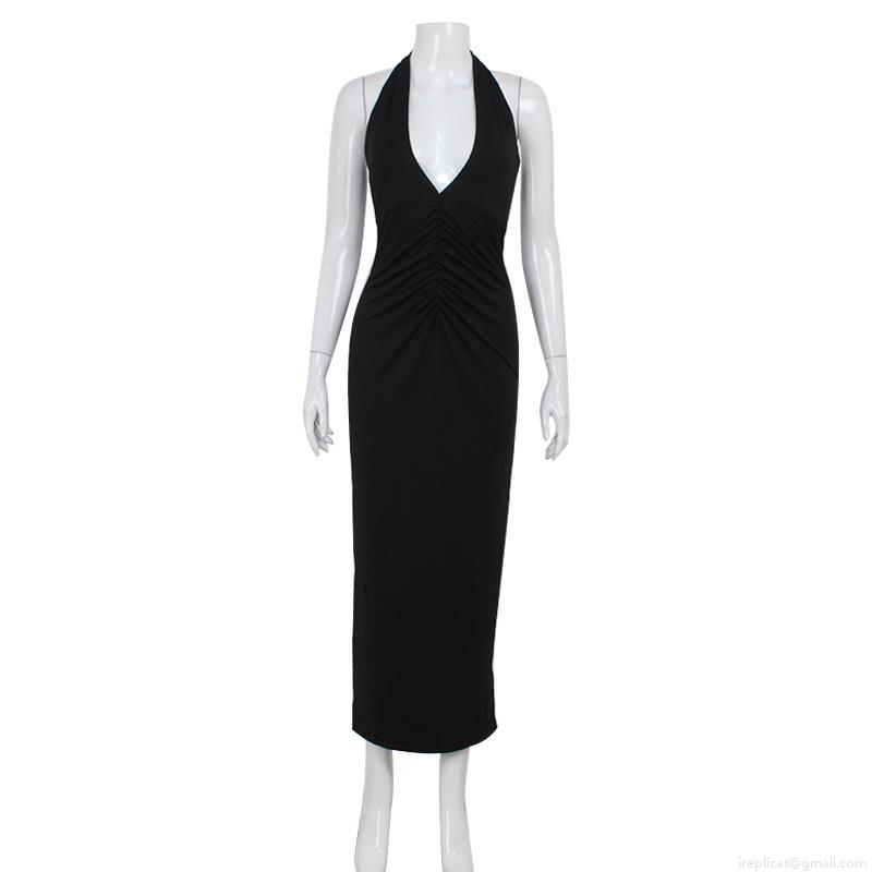 Sexy Women Halter V-Neck Backless Maxi Dress Elegant Ruched Slim Fit Bodycon Summer Party Evening Long Dress Polyester Spandex Night Out Clubwear